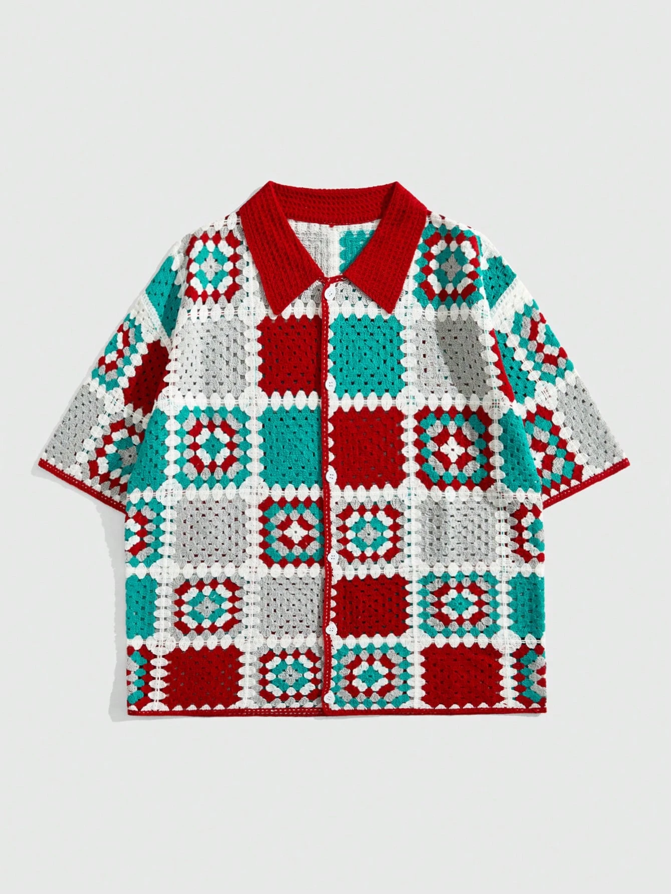 Street Life Camisa holgada de punto, top de manga corta de punto para hombre