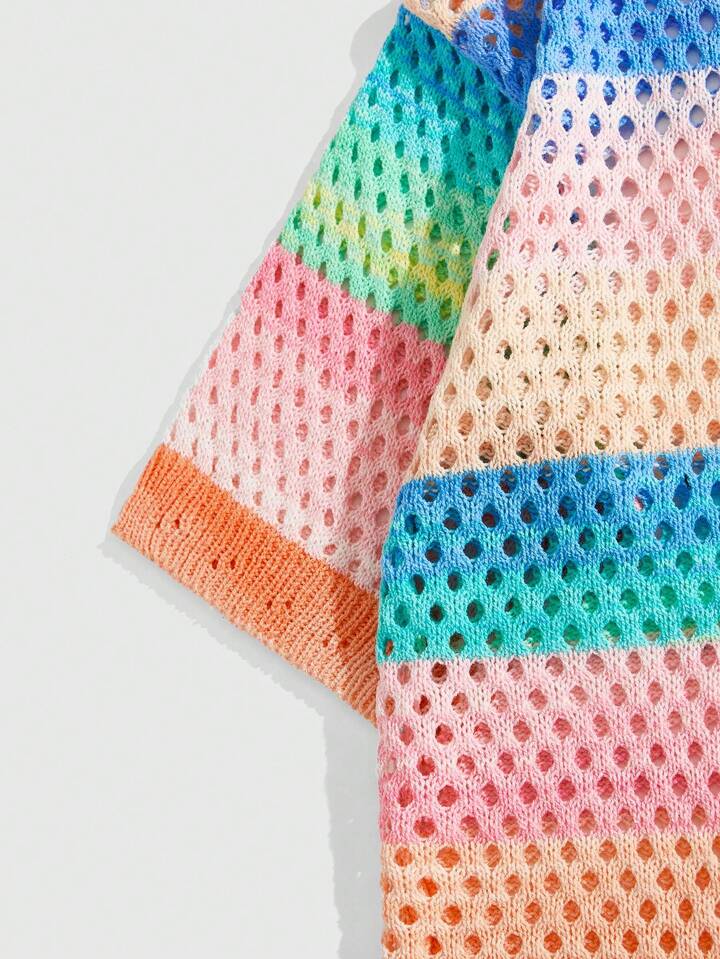 Street Life Camisa holgada de punto para hombre, top de punto de manga corta