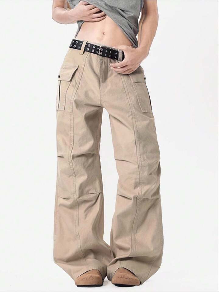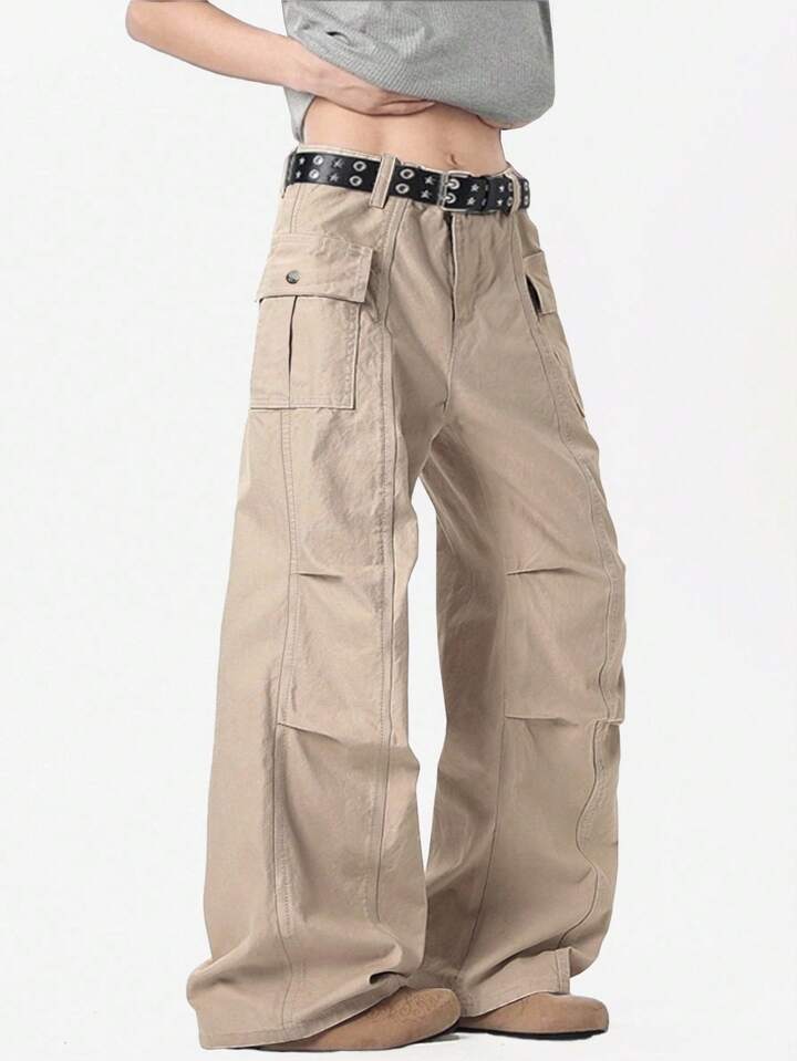 Street Life Pantalones cargo de pierna recta y holgados con múltiples bolsillos para hombre, otoño