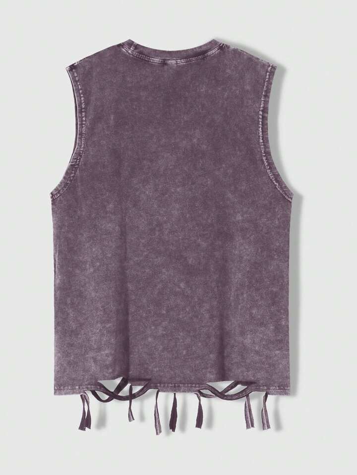 Street Life Camiseta de tirantes lavada y desgastada con estampado de boca, para hombre, de verano, para la escuela