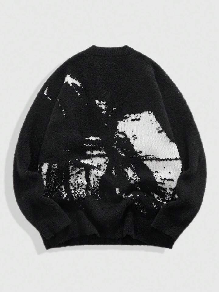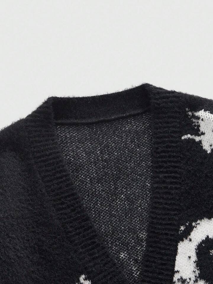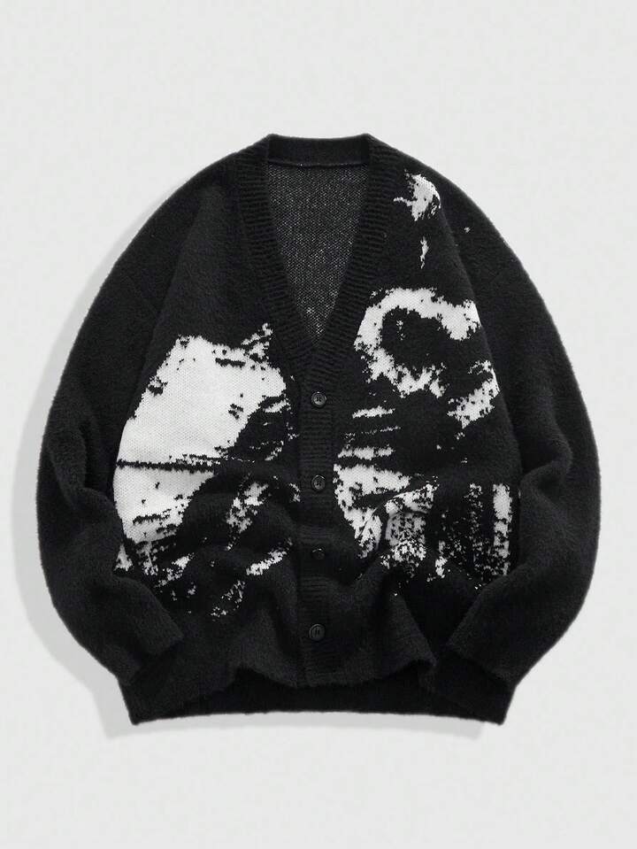 Street Life Cárdigan de punto suave con estampado de mariposa oscuro de apertura frontal para hombre, ropa urbana, otoño/invierno
