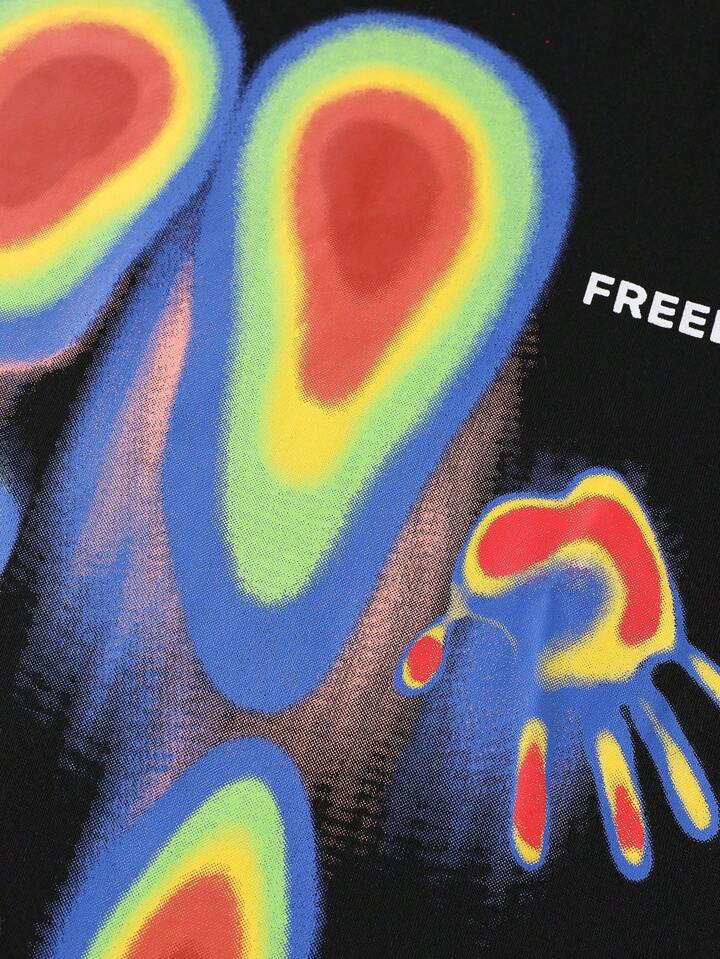 Street Life Camiseta de manga corta con estampado gráfico oversize para hombre, con corte holgado y acortado