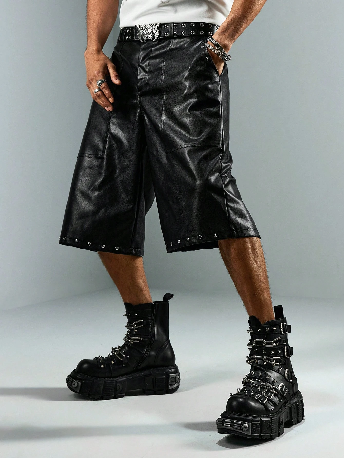 Street Life Pantalones cortos de moda con diseño de bolsillo con rhinestones de tela de PU para hombres