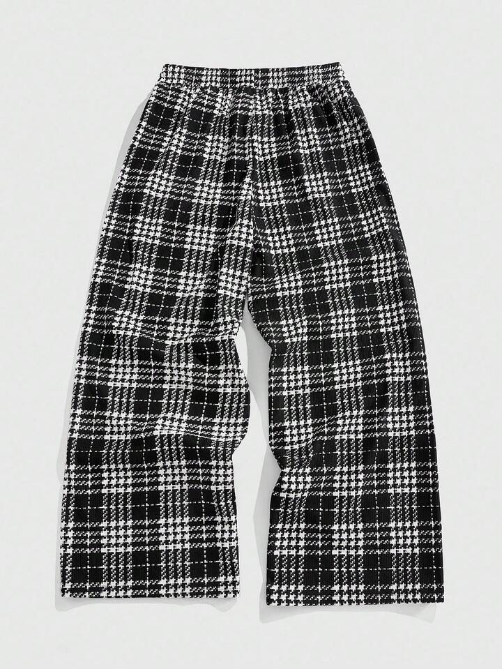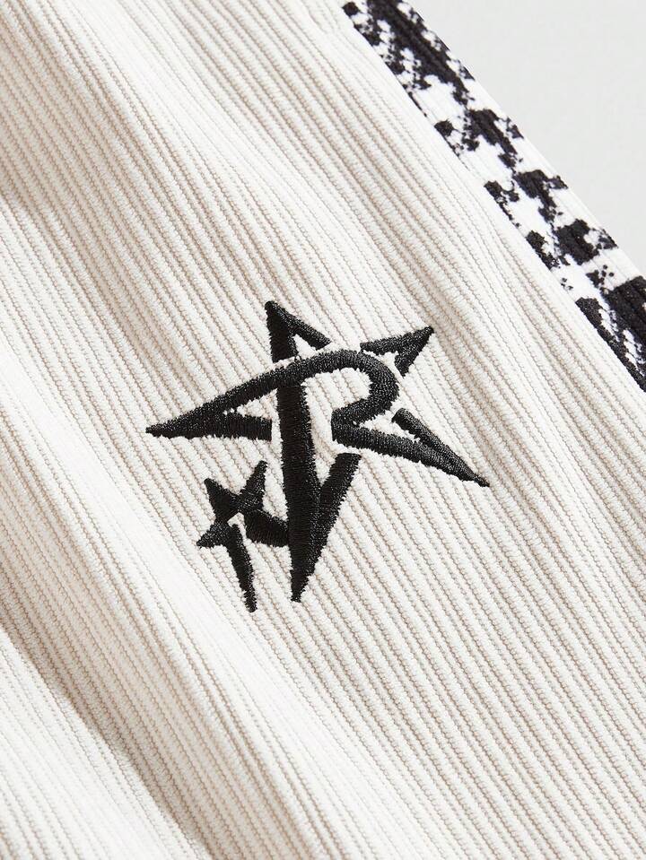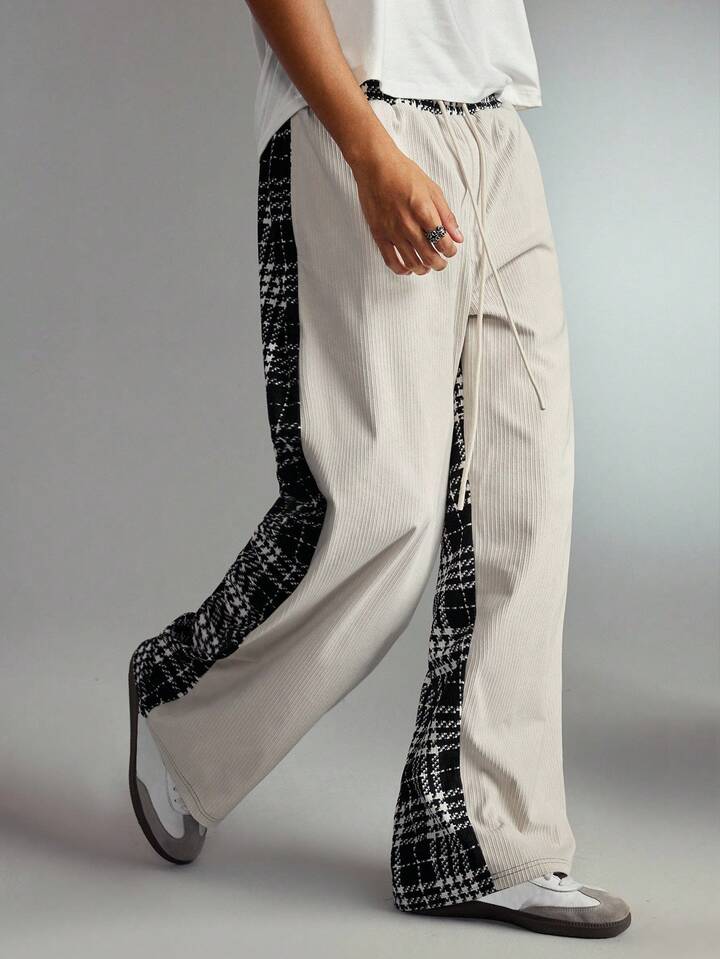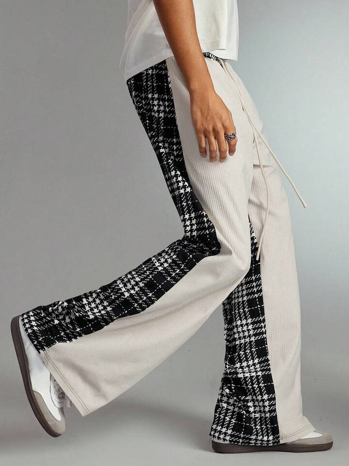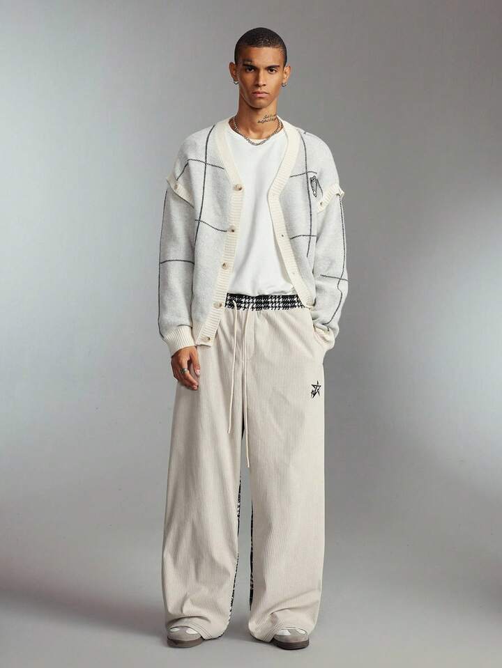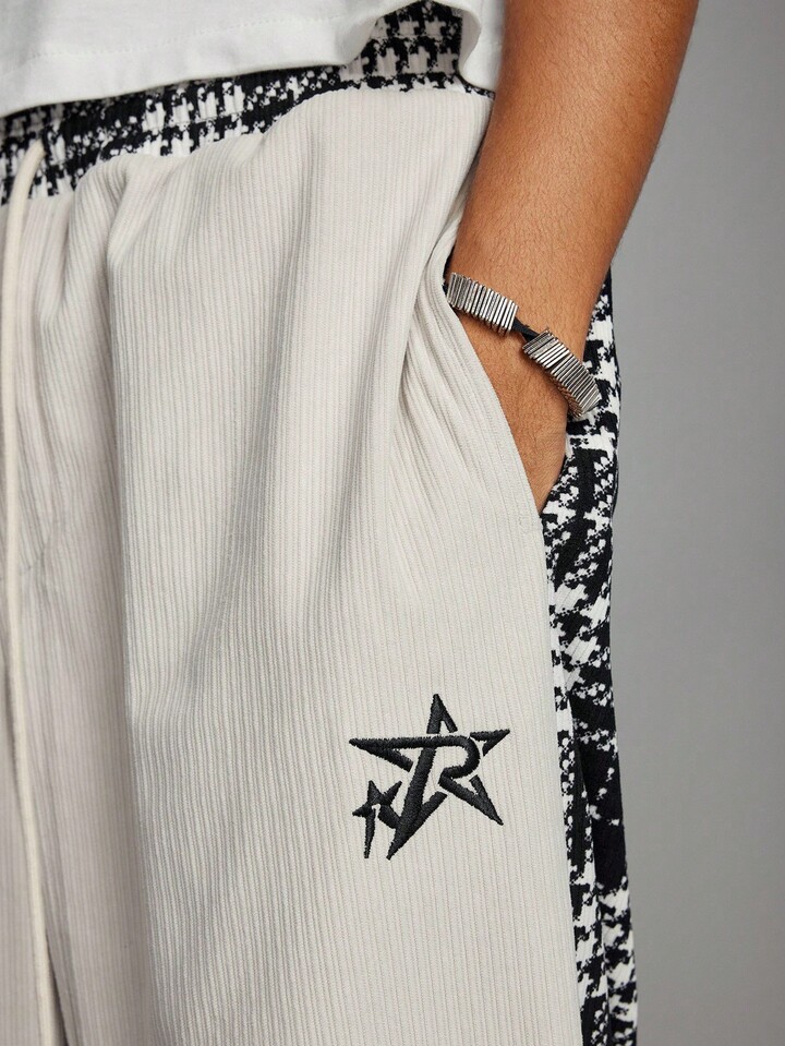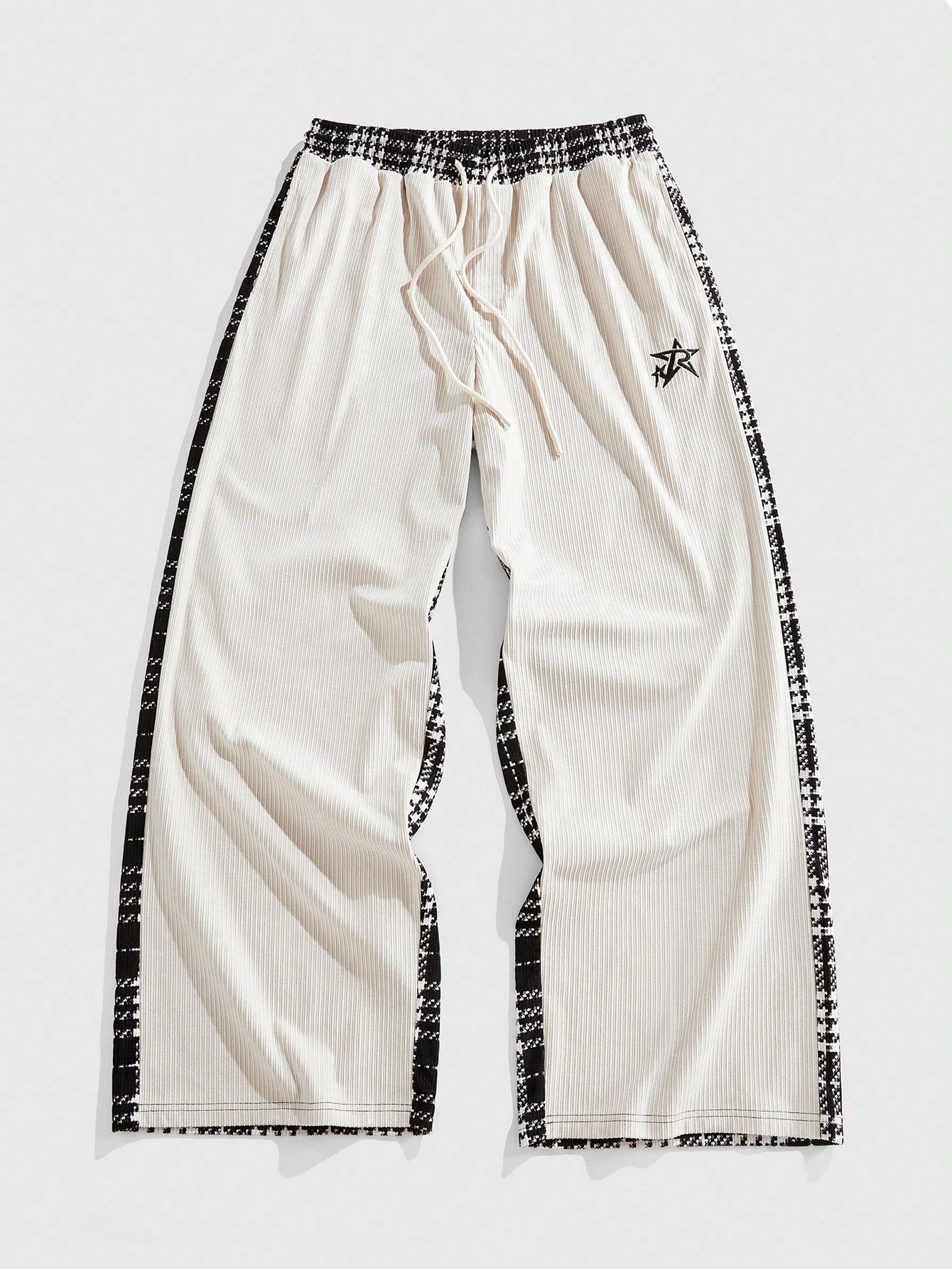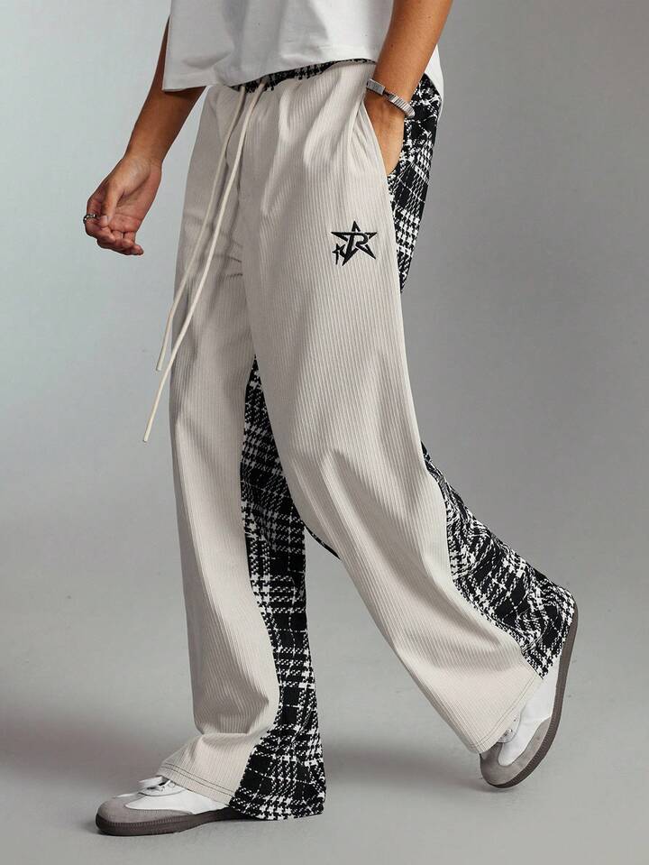 Street Life Pantalones holgados con estampado de estrella de cinco puntas, cintura con cordón y parches a cuadros para hombre, otoño