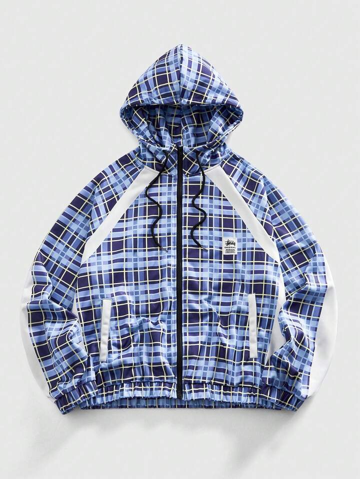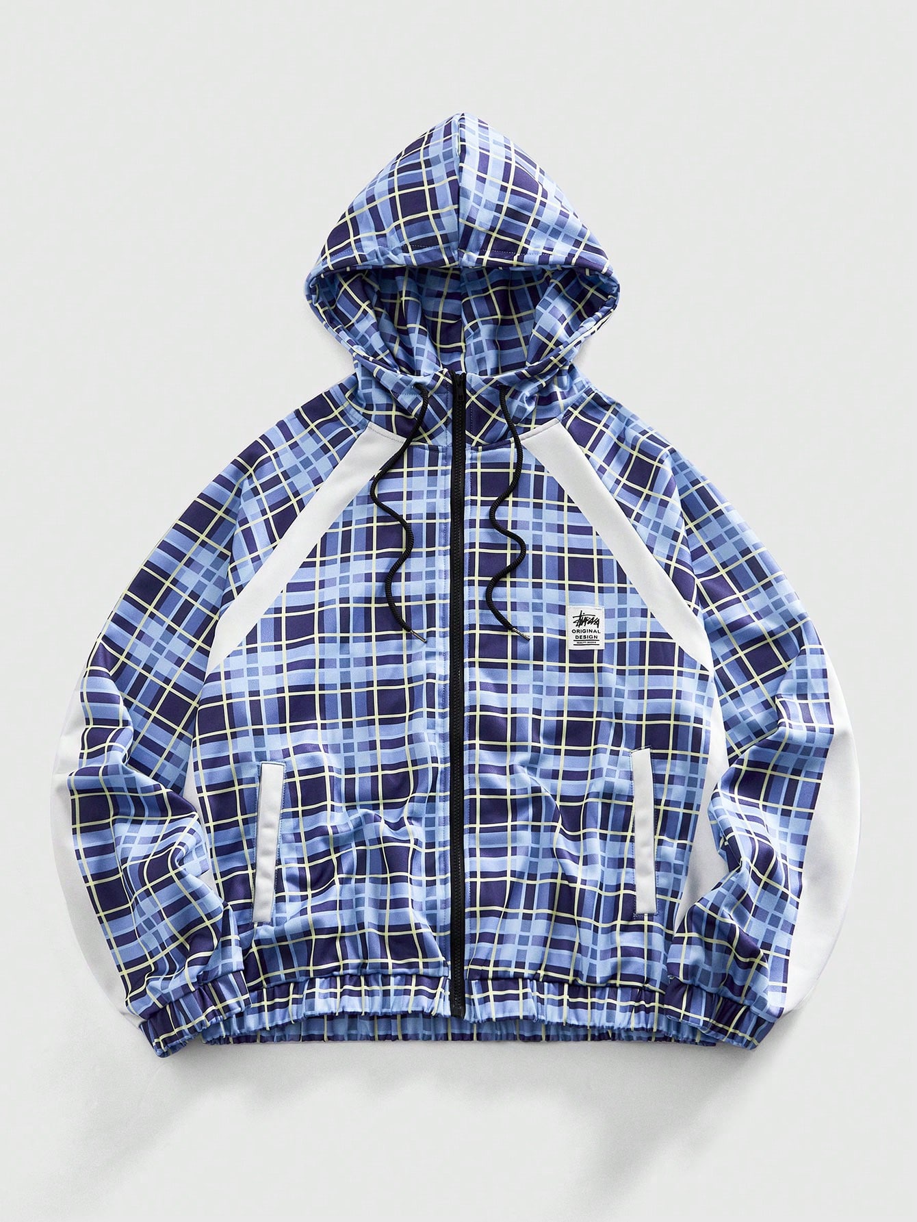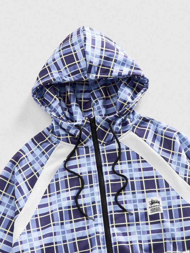 Street Life Sudadera con capucha con cremallera y cordón de hombre a cuadros