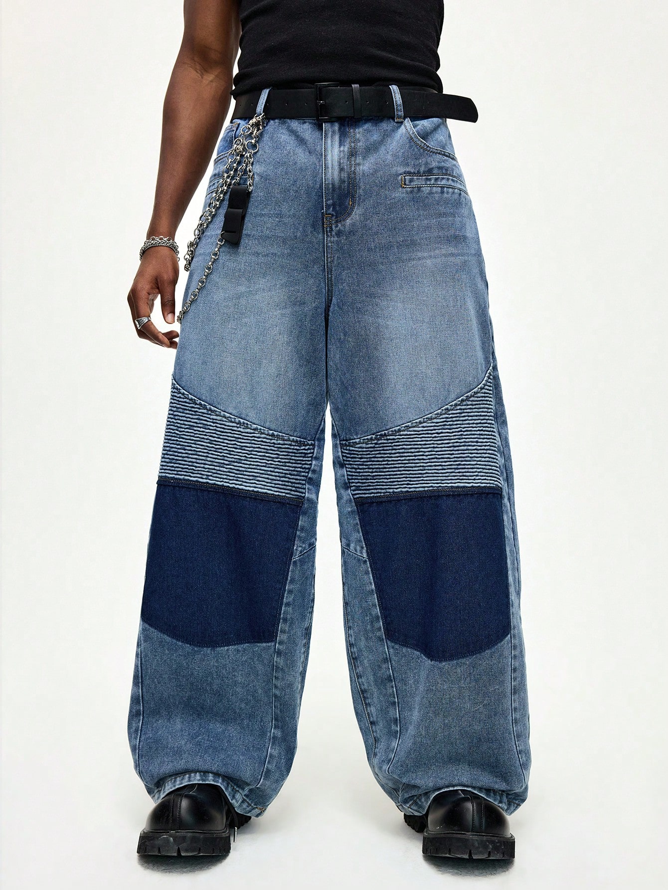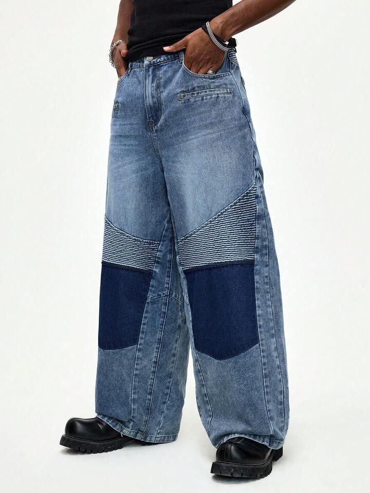 Street Life Jeans casuales versátiles de pierna ancha y holgados con bolsillo para hombre