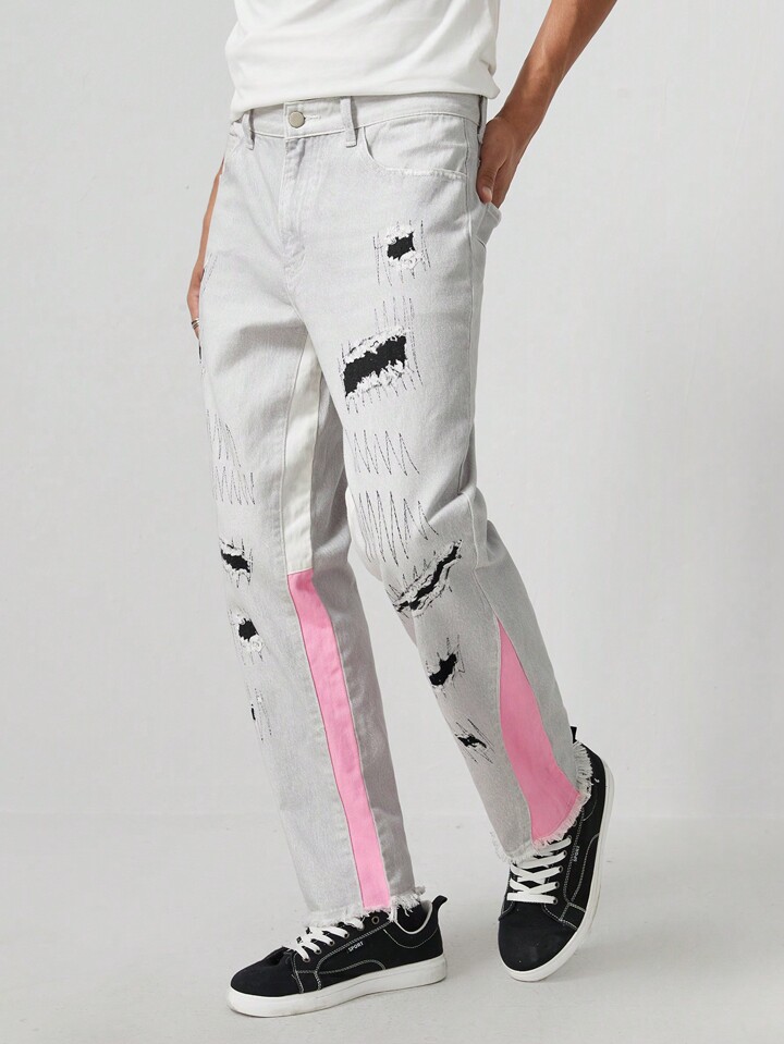 Street Life Jeans casuales versátiles de corte recto y suelto con detalles de color en los bolsillos para hombre