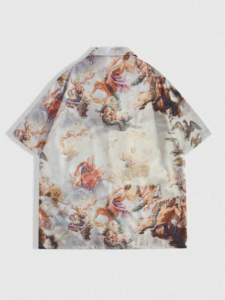Street Life Camisa de manga corta con estampado de retrato para hombres, escuela