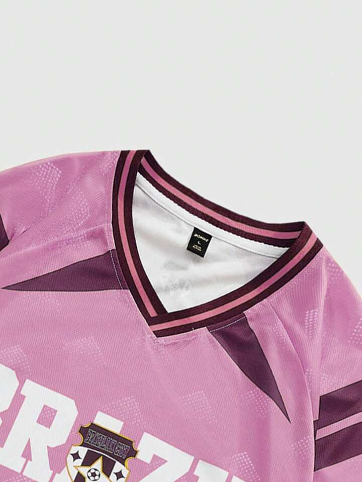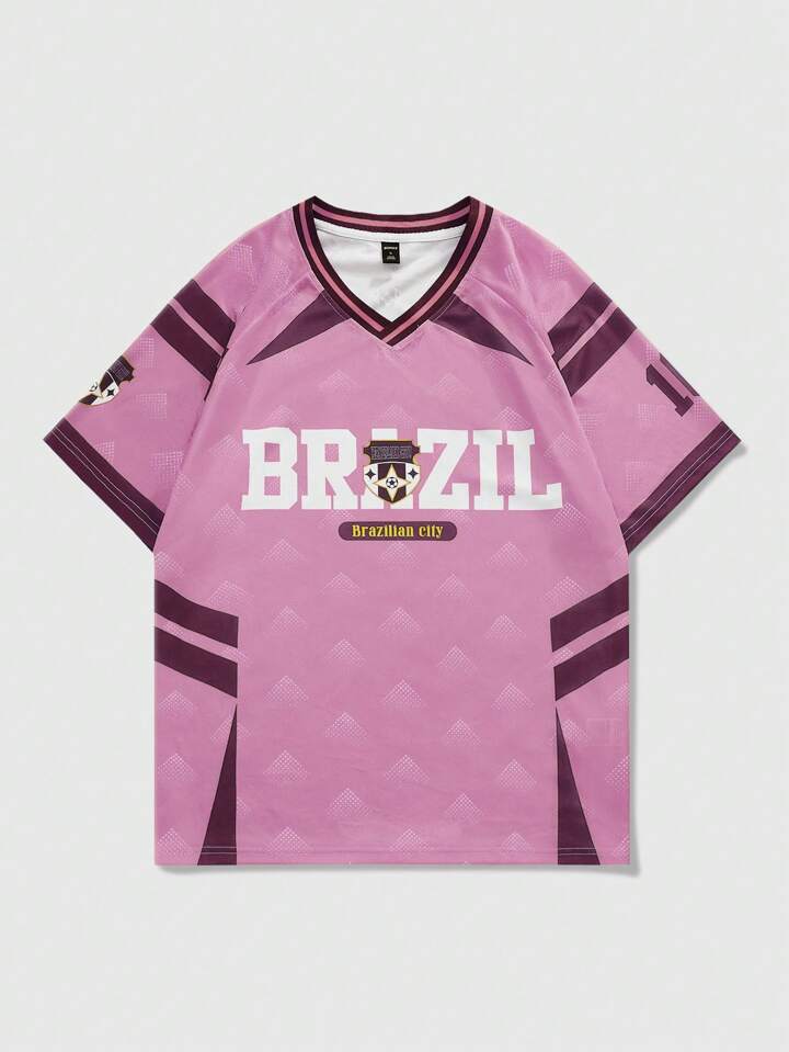 Street Life Camiseta deportiva de fútbol de estilo universitario de Brasil "BRASIL" con estampado gráfico del escudo en inglés, jersey de manga corta de uso casual