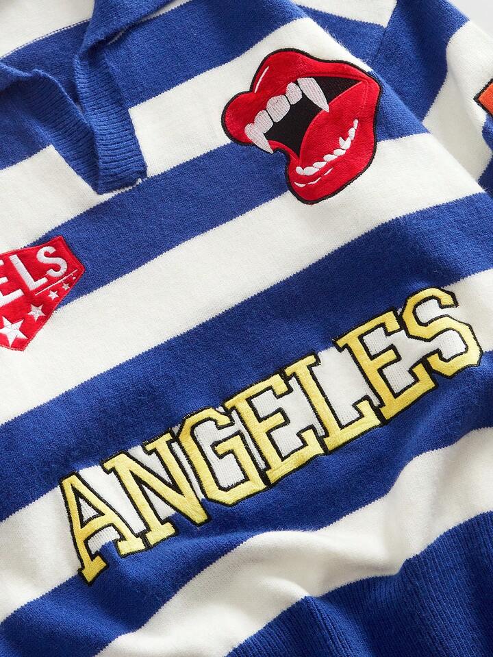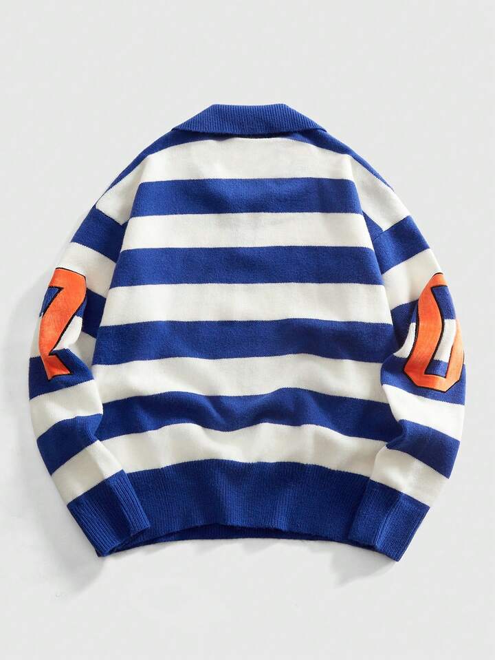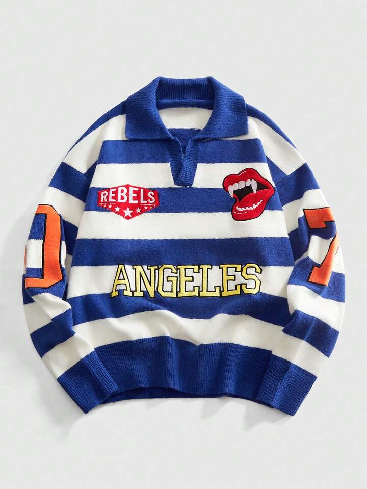 Street Life Suéter de punto con cuello bordado de estilo callejero para hombres