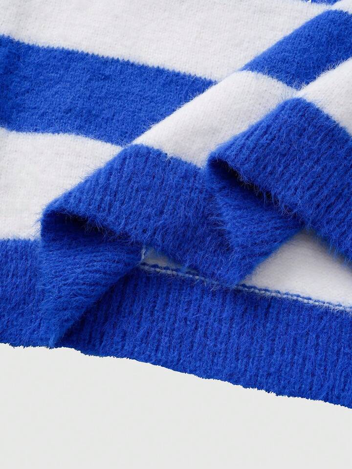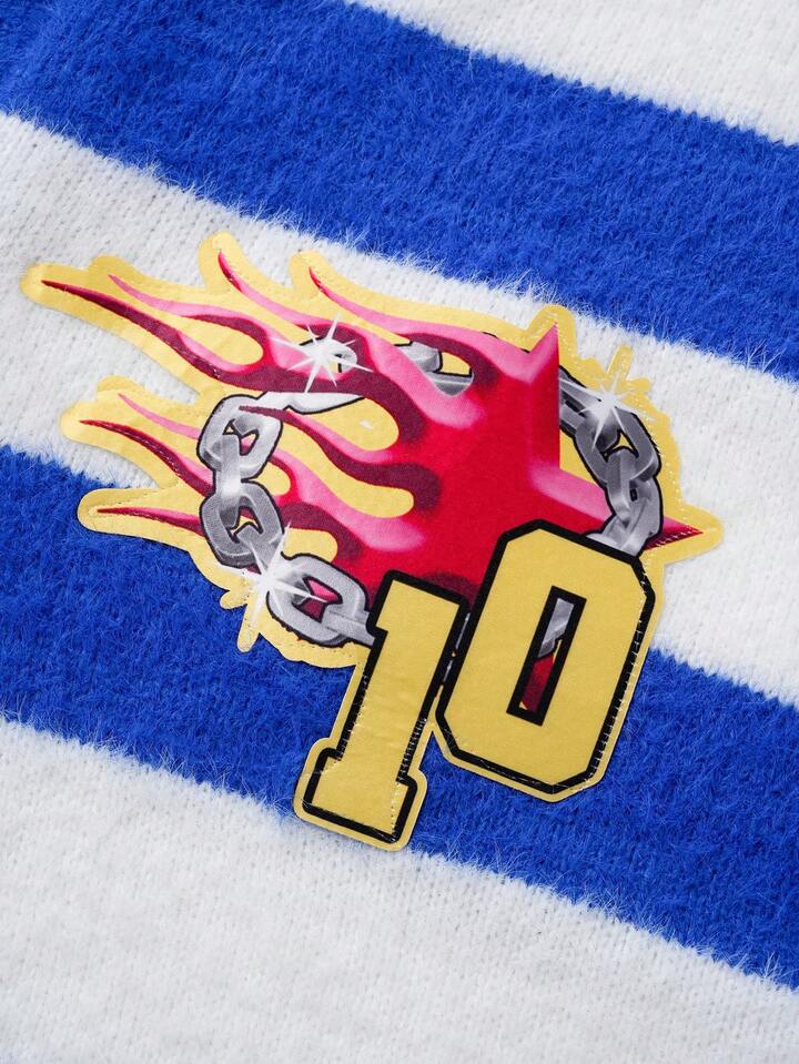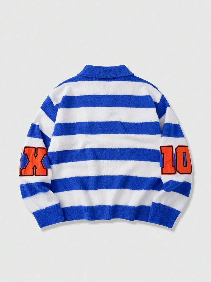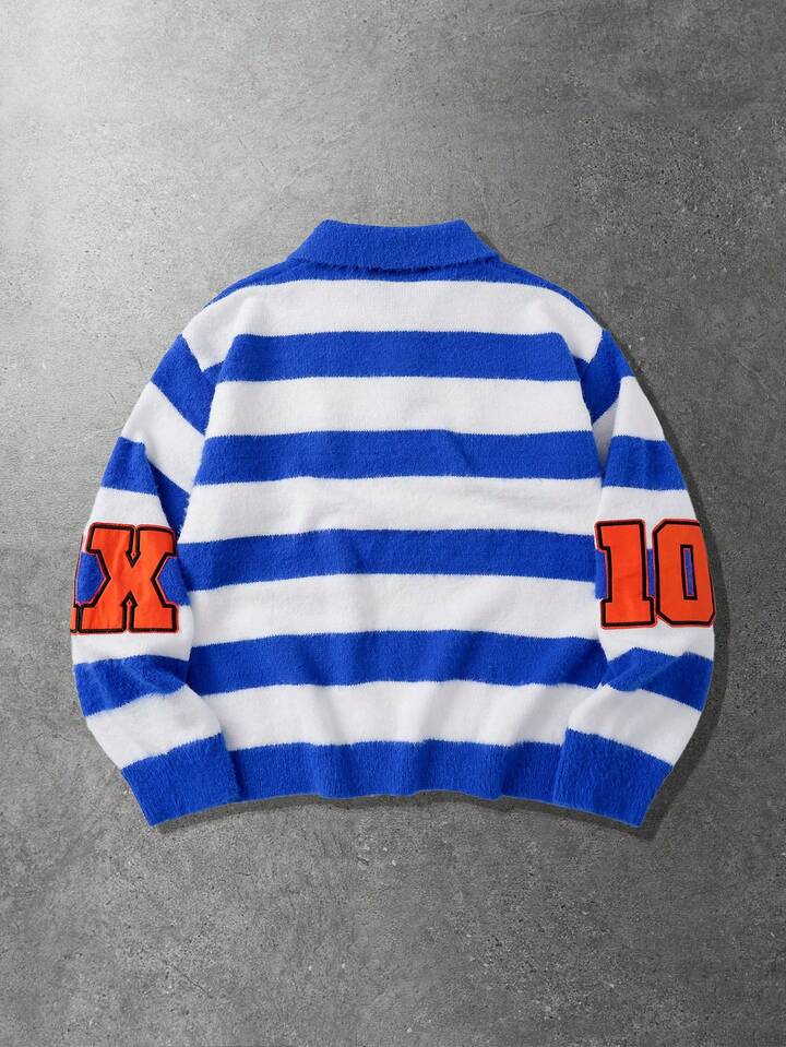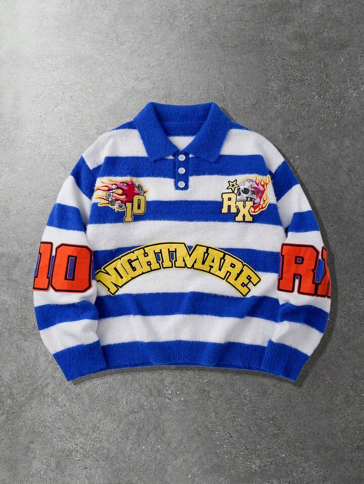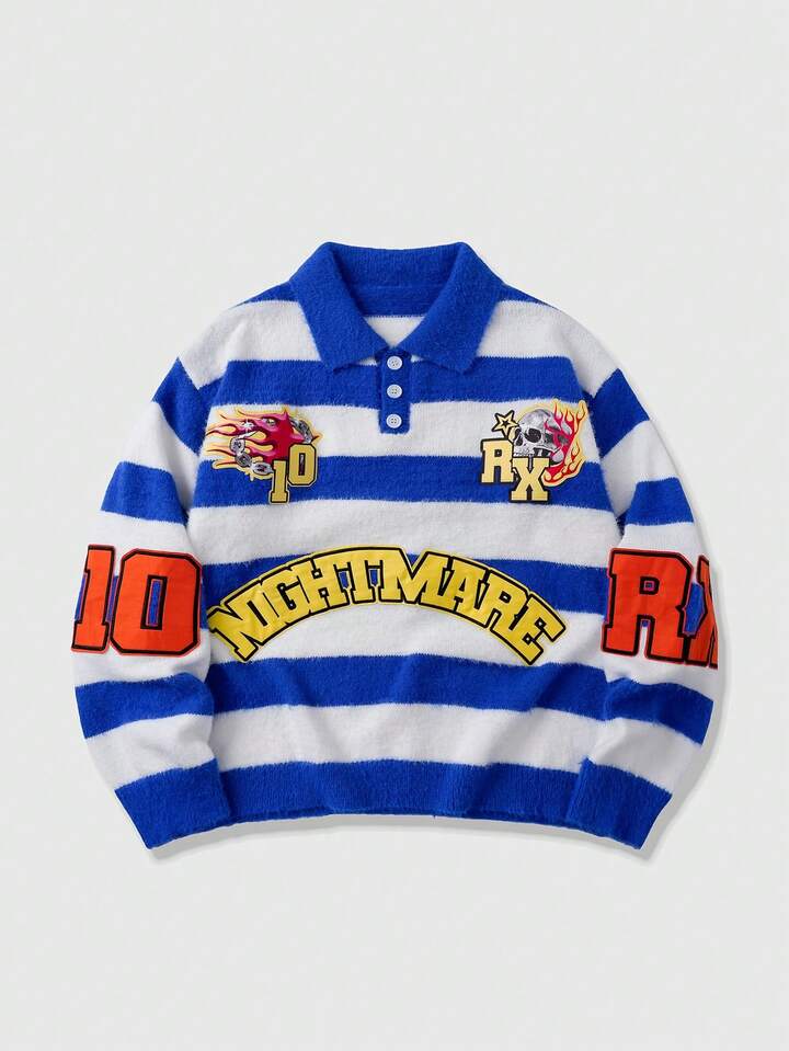 Street Life Suéter de manga larga con rayas y gráfico bordado para hombre