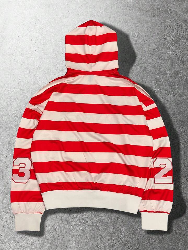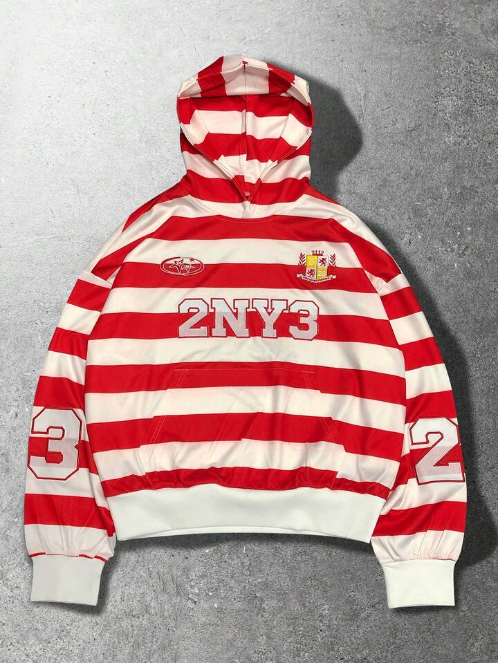 Street Life Sudadera con capucha de corte holgado con patrón bordado y rayas para hombre