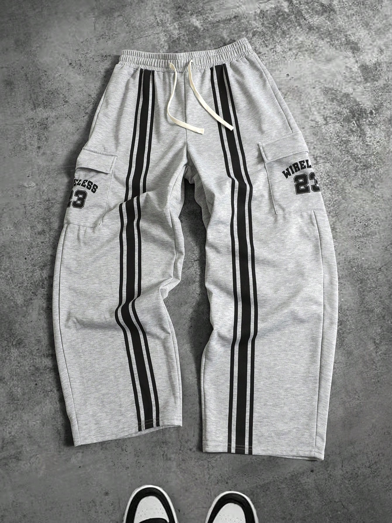 Street Life Pantalones de chándal casuales con cordón en la cintura y bolsillo, con estampado de rayas y letras para hombre