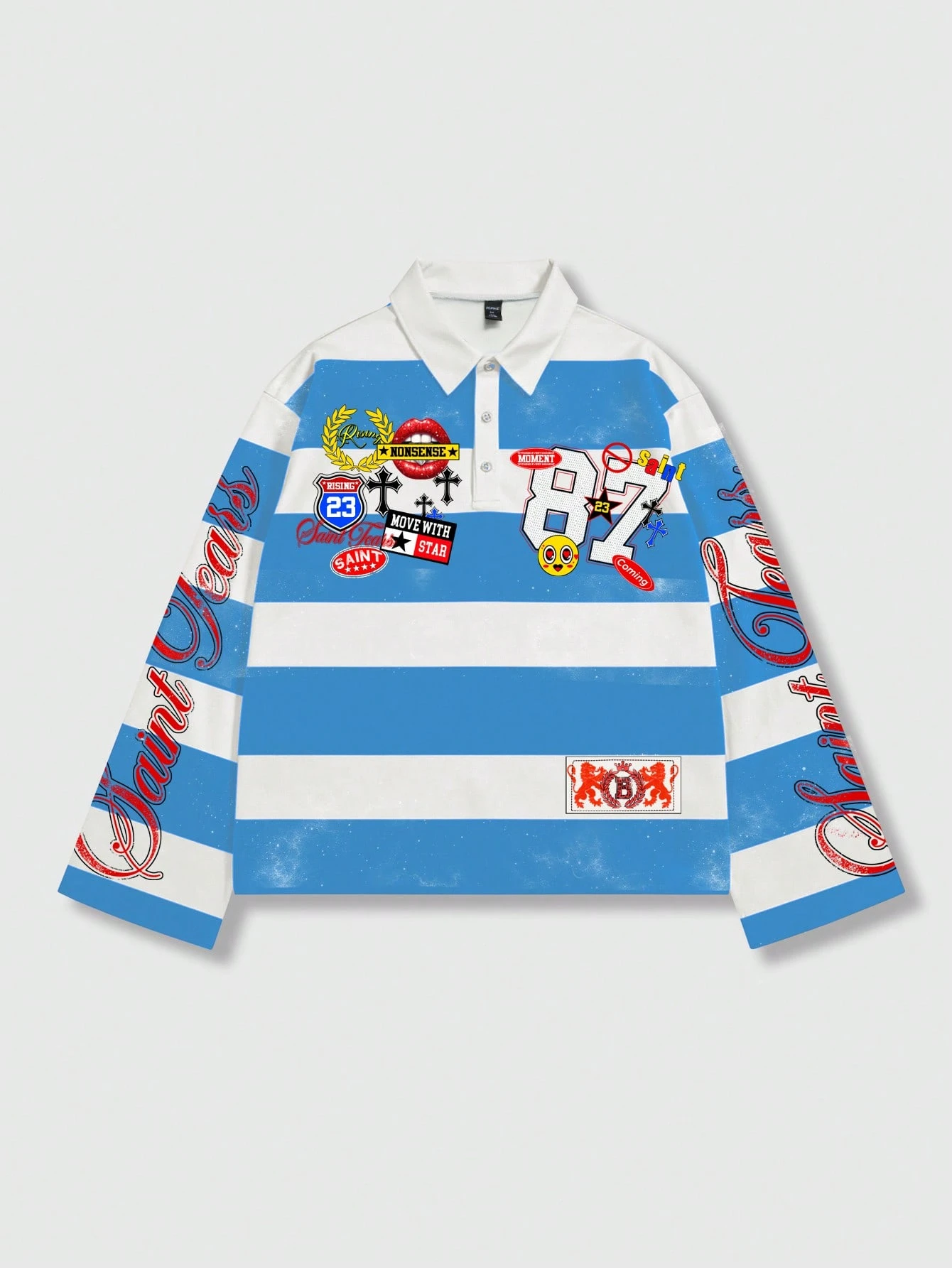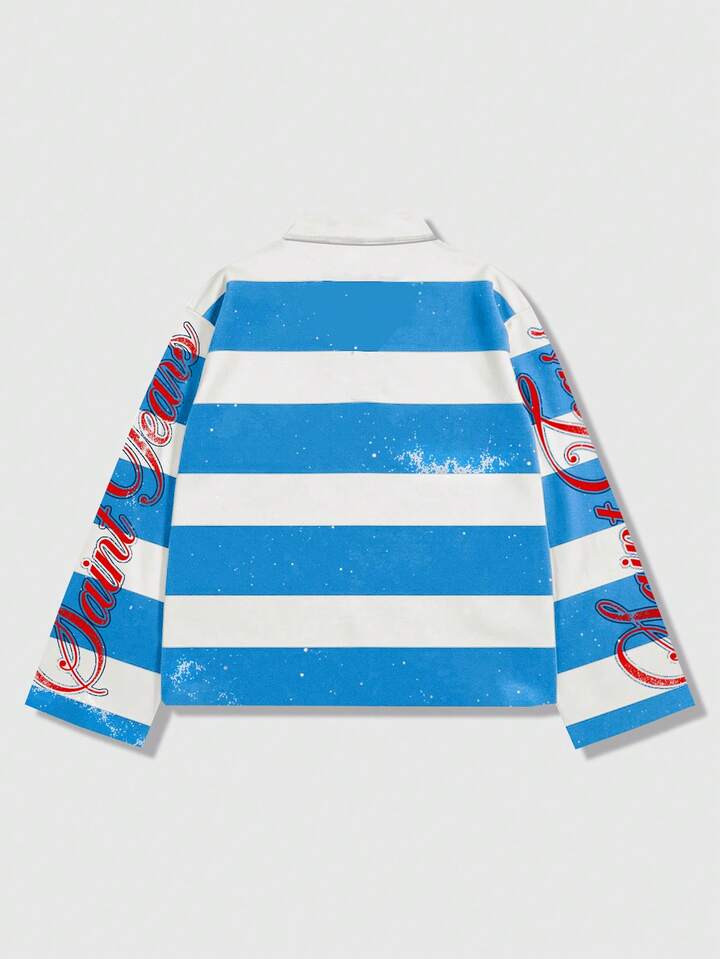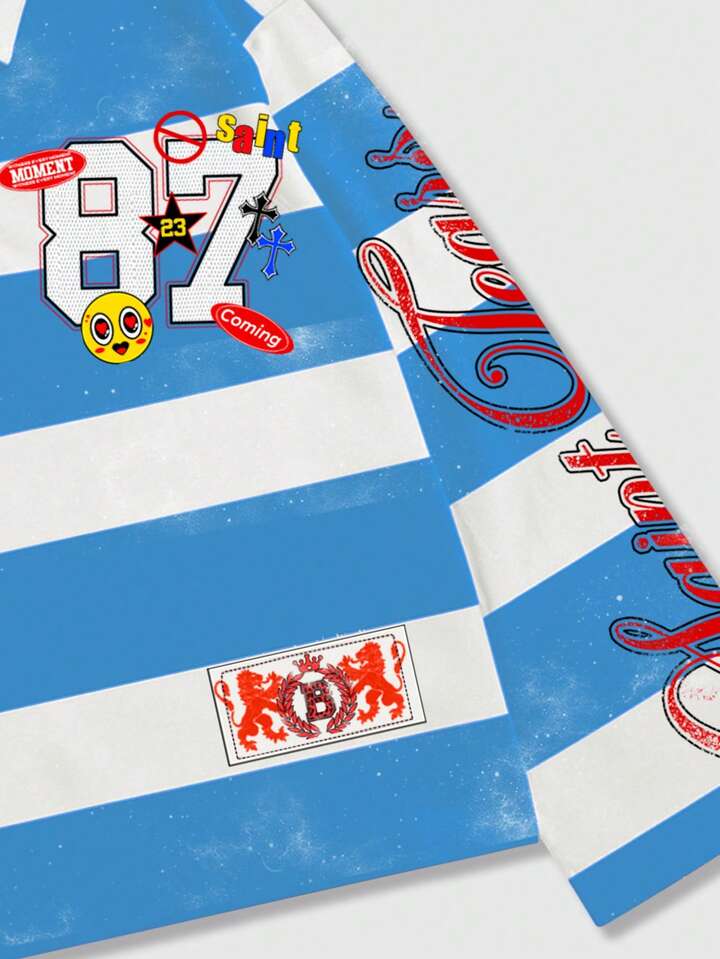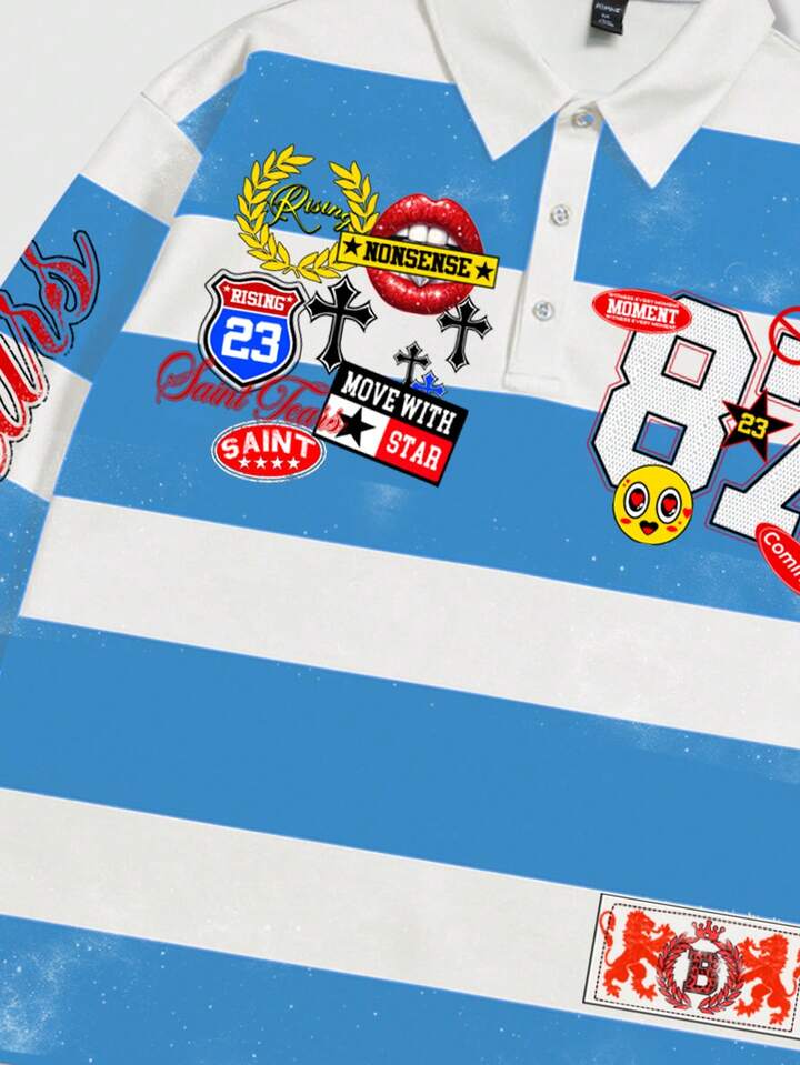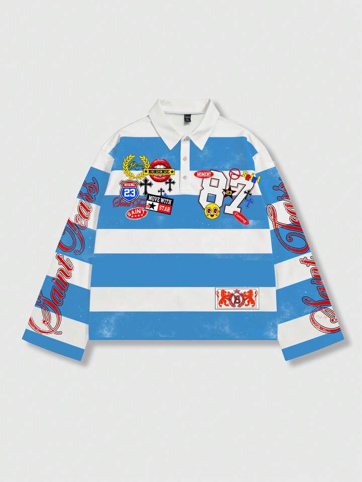 Street Life Camiseta polo de manga larga con estampado y rayas para hombre, estilo universitario casual