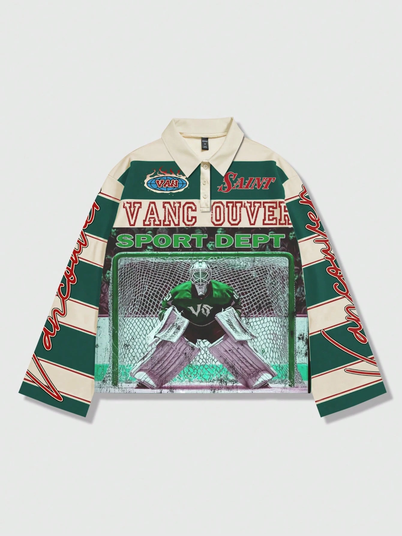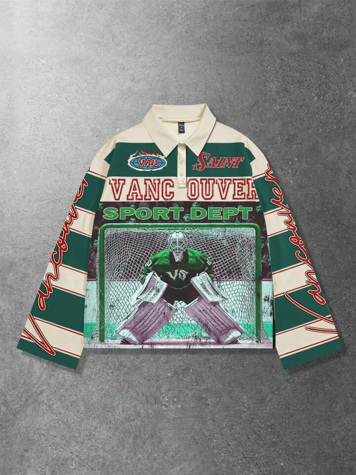 Street Life Camiseta polo de manga larga con estampado y rayas para hombre, estilo universitario casual