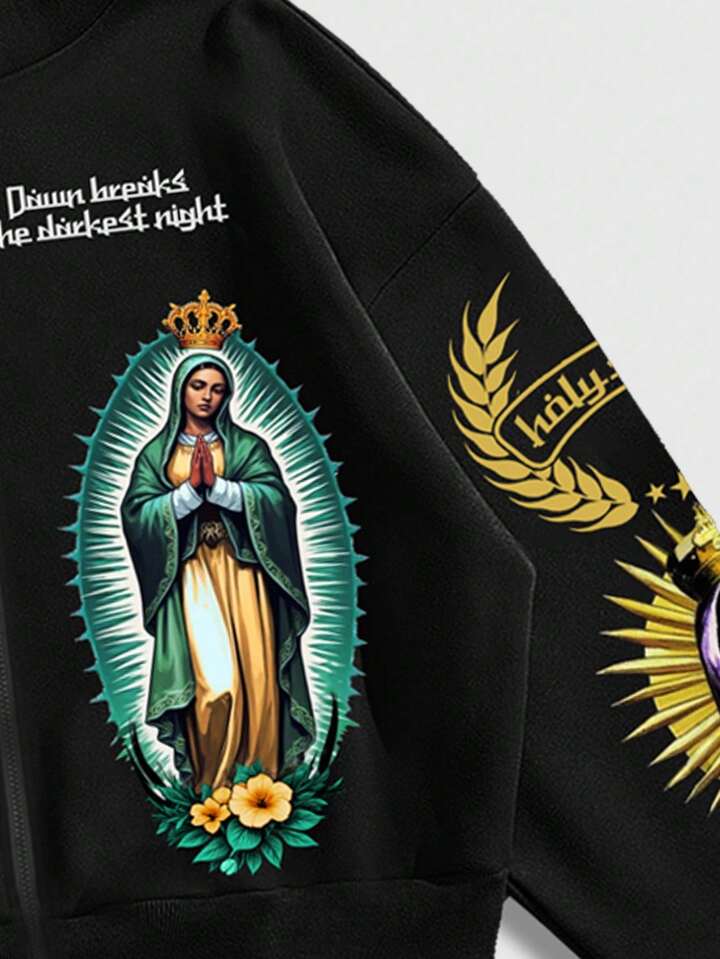 Street Life Sudadera religiosa estampada para hombre, estilo holgado y corto, otoño