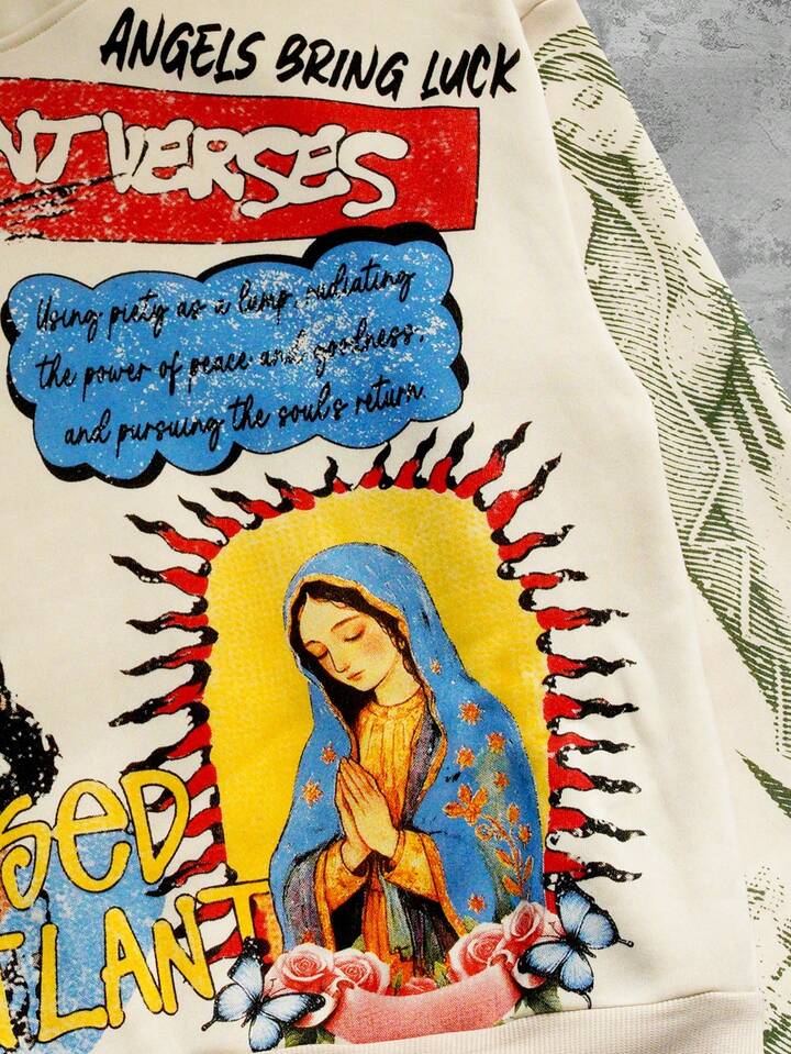 Street Life Sudadera con capucha estampada de estilo urbano para hombre, otoño/invierno