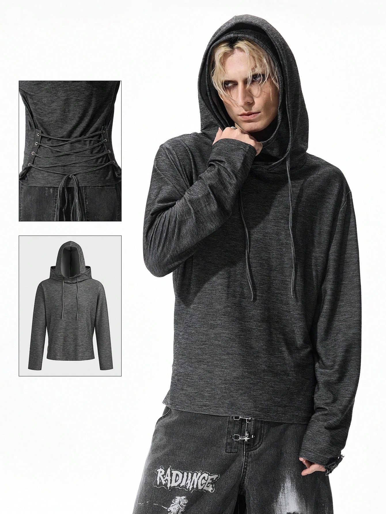 Street Life Sudadera con capucha de manga larga, ajustada, con diseño de cordón y espalda descubierta, para hombre, estilo punk apocalíptico para festivales de música