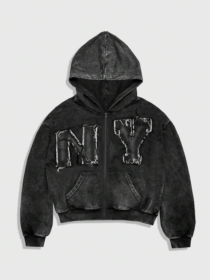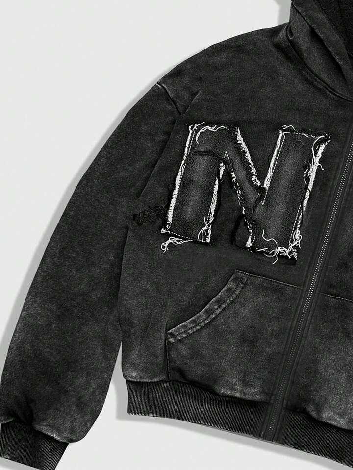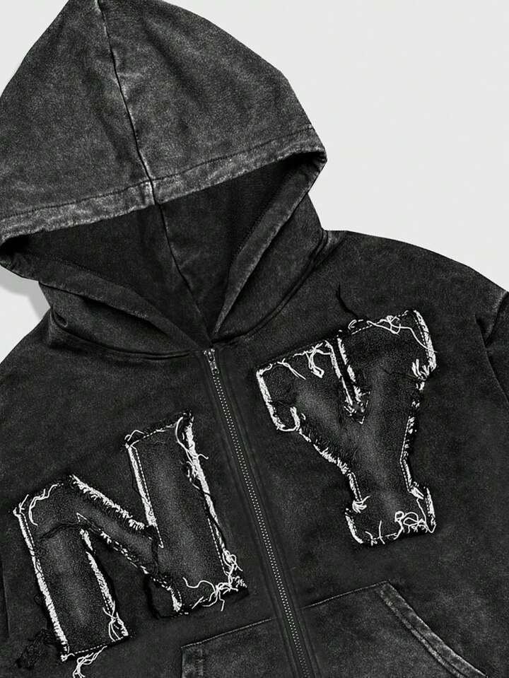 Street Life Sudadera con capucha casual para hombres con aplicación de letra lavada
