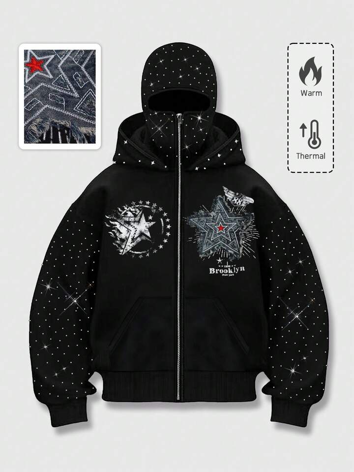 Street Life Chaqueta de sudadera pesada de estilo punk callejero para hombres, otoño/invierno