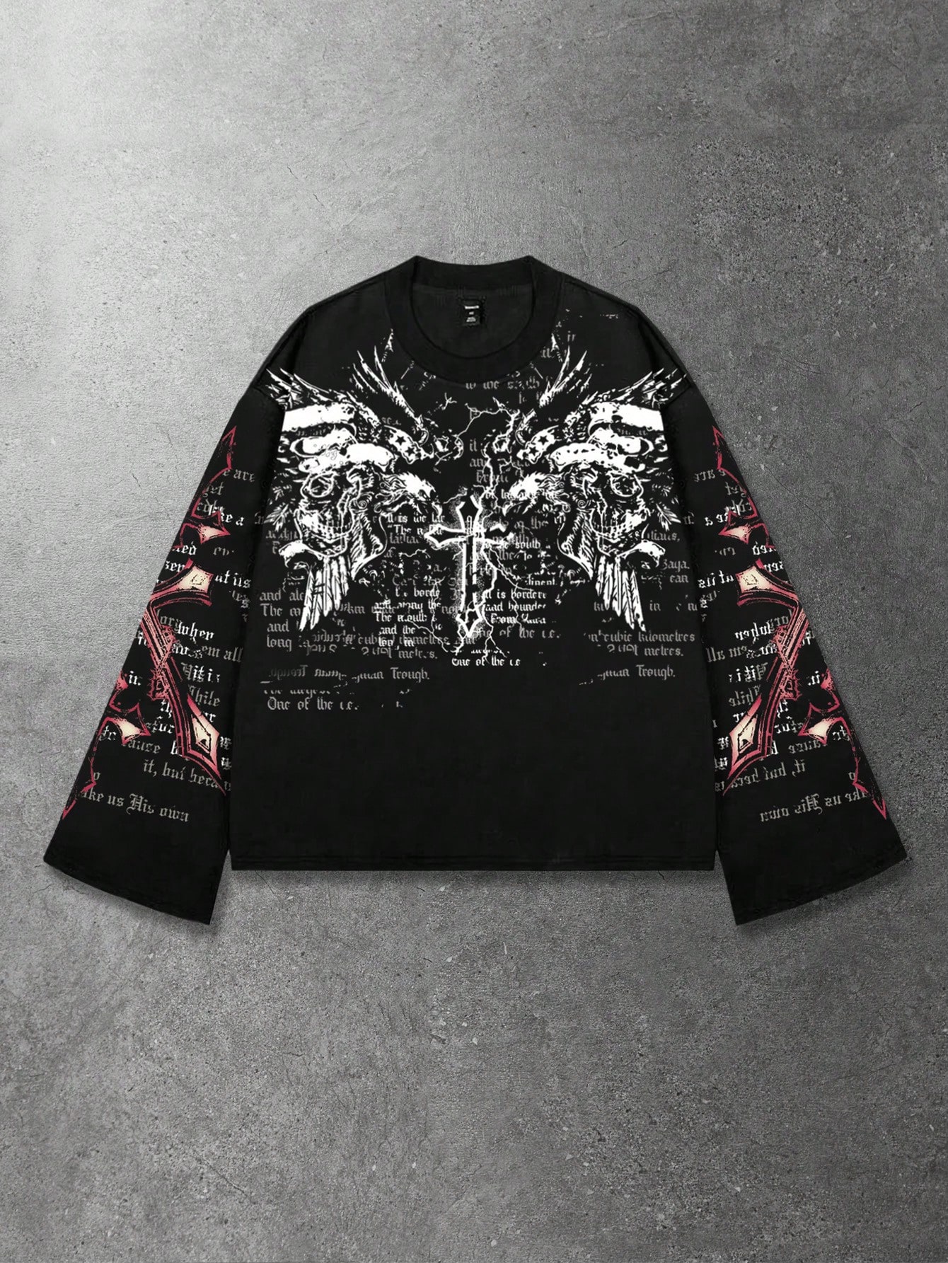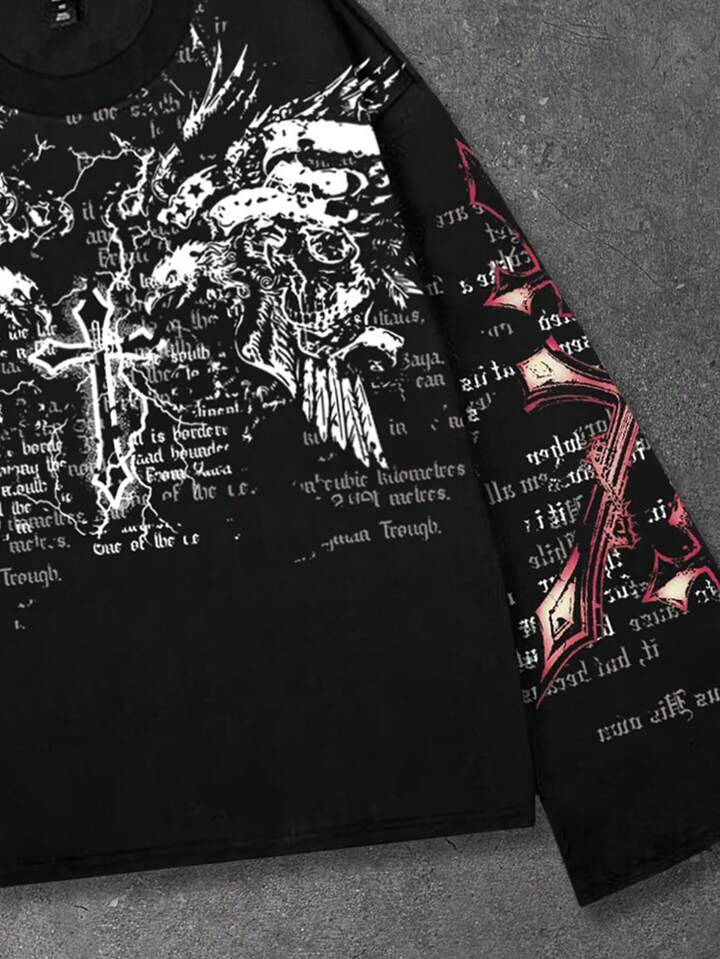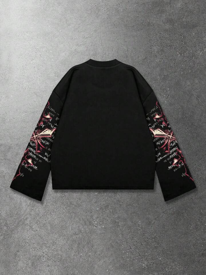 Street Life Camiseta de manga larga holgada y corta con estampado gráfico retro para hombre