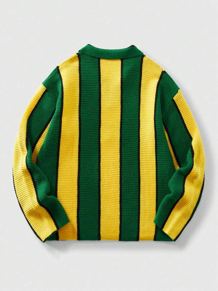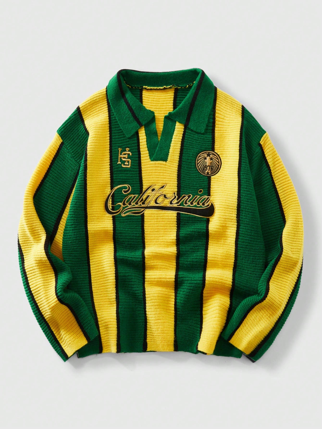 Street Life Suéter de punto con cuello retro inspirado en el fútbol, estilo streetwear para hombre