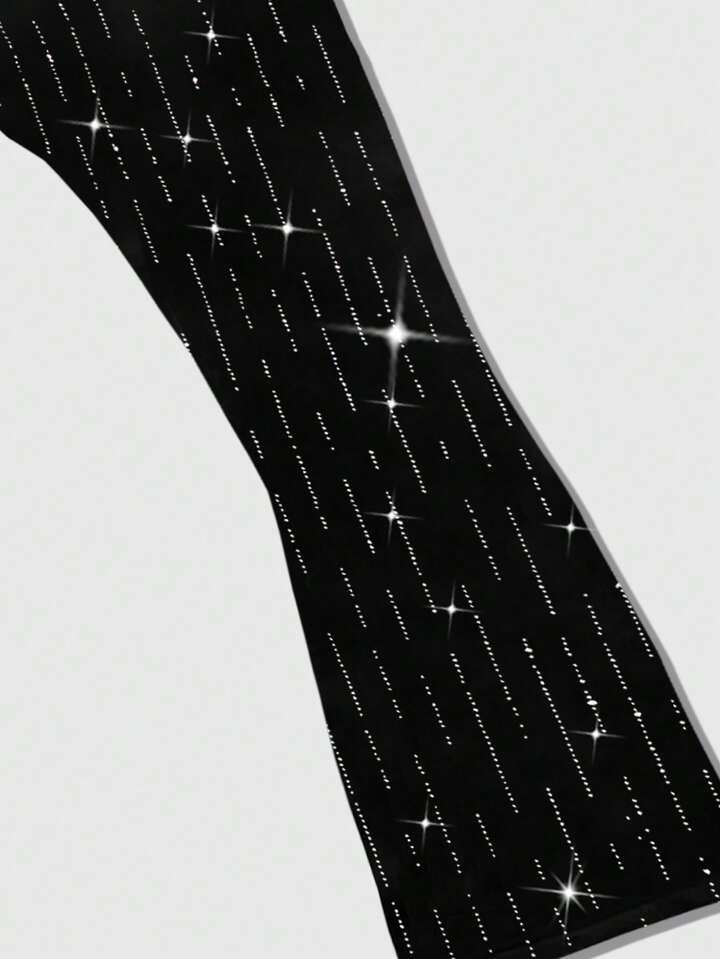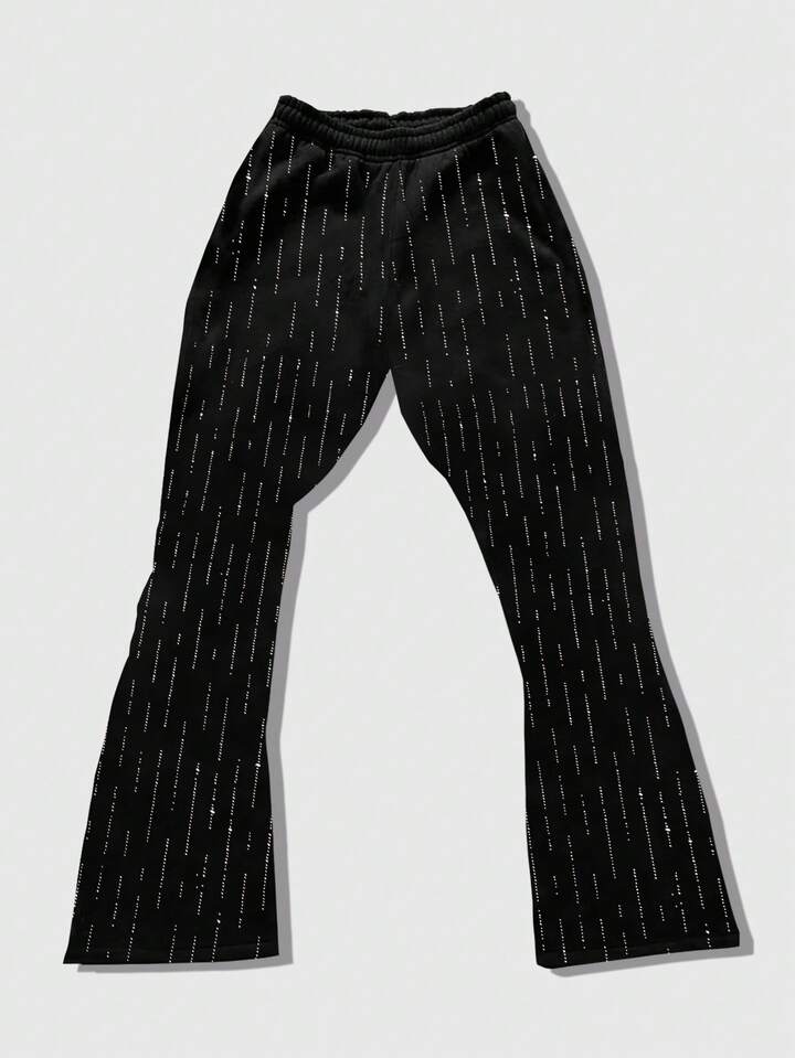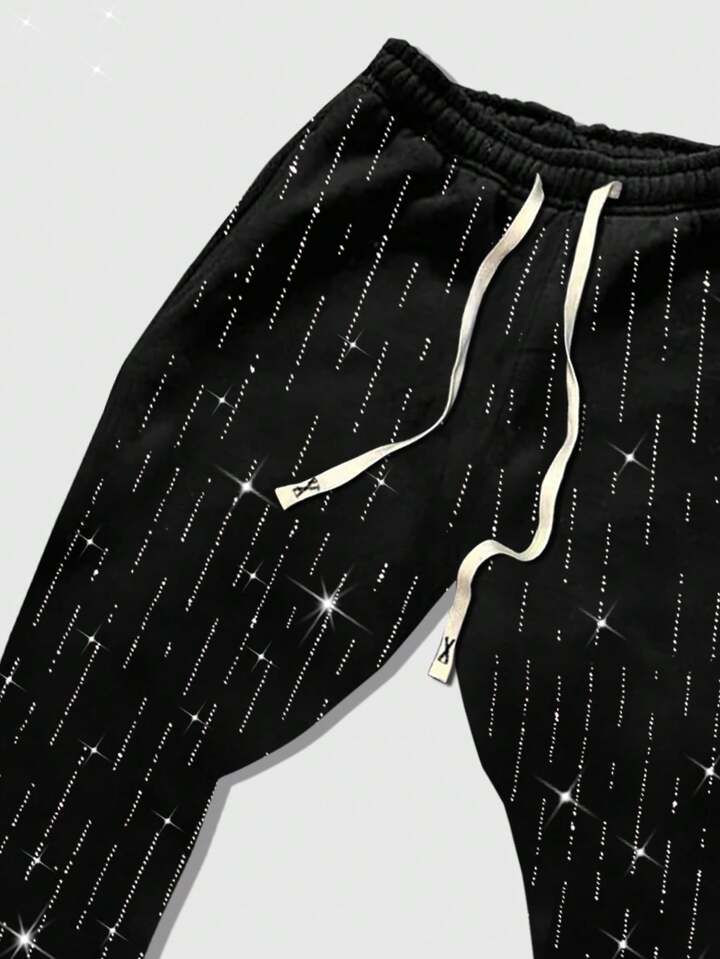 Street Life Pantalones de chándal con cintura con cordón y vuelo con rhinestones para hombres, pantalones de otoño/invierno