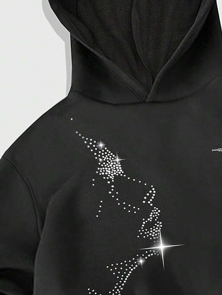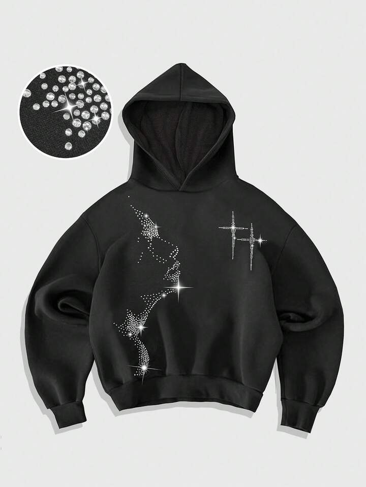 Street Life Sudadera con capucha holgada casual con estampado de figura y adornos de rhinestone para hombre, otoño