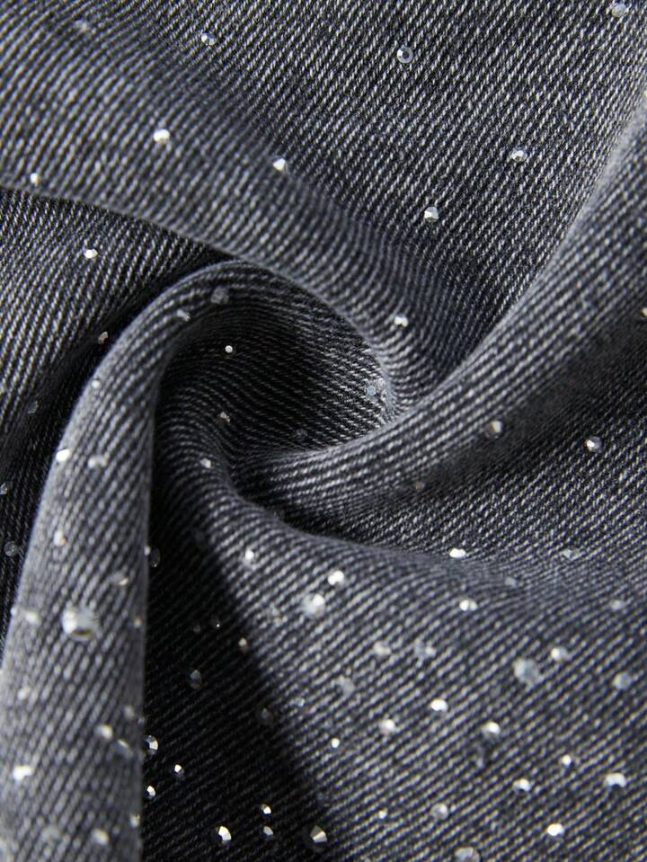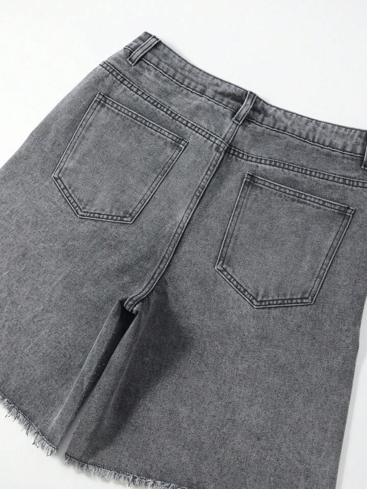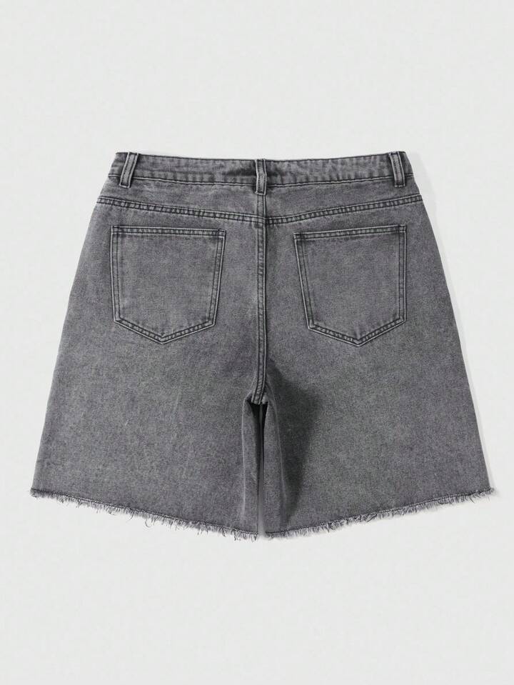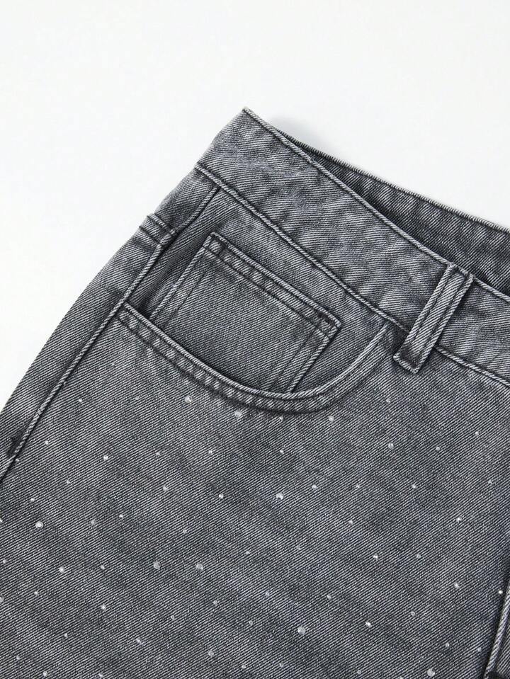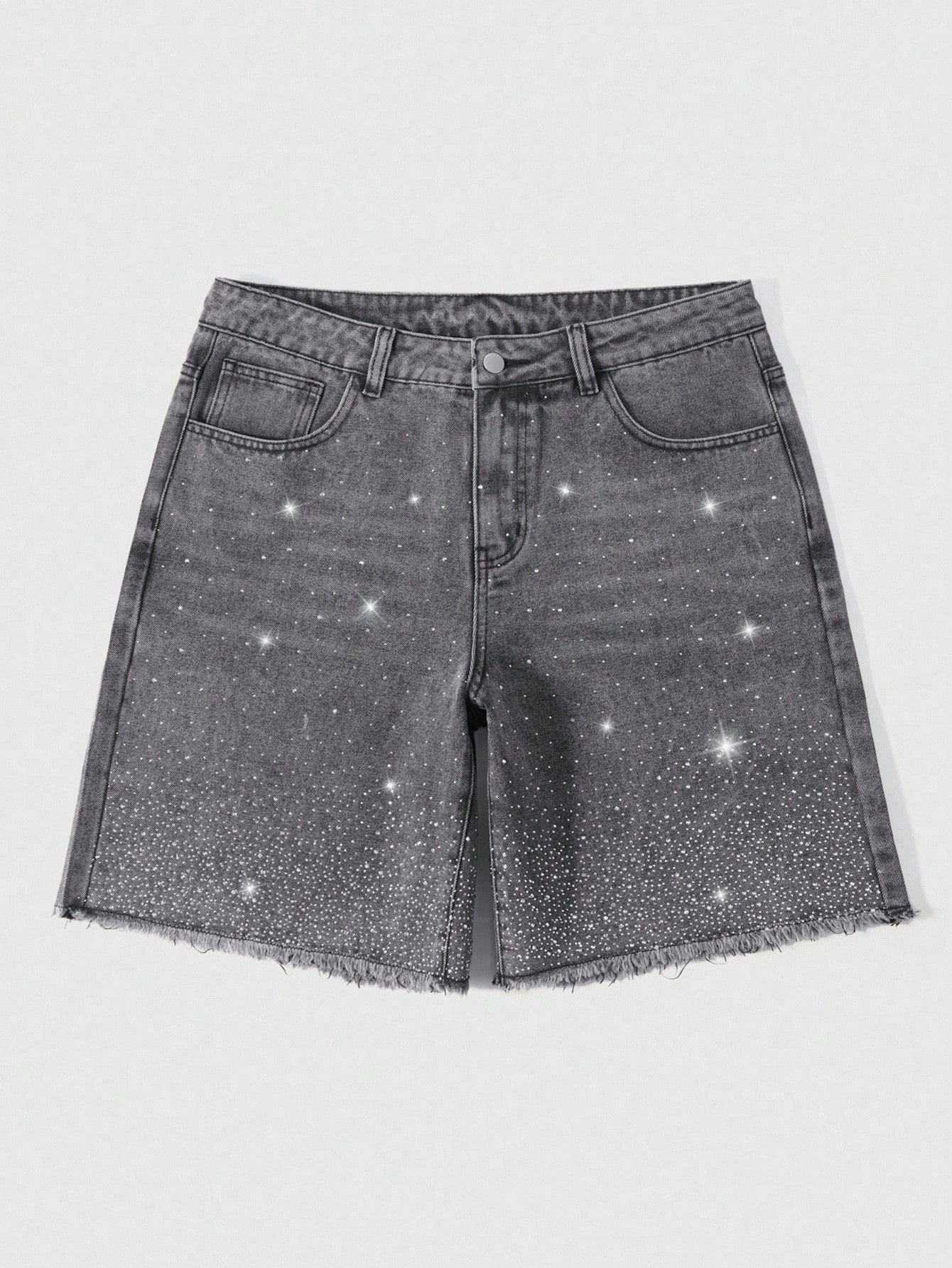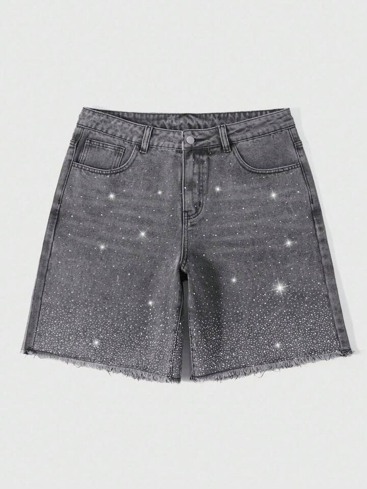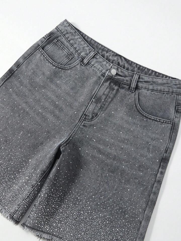 Street Life Pantalones cortos vaqueros casuales con bolsillo con adornos de rhinestone y dobladillo deshilachado para hombres