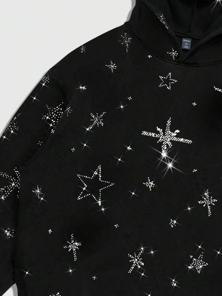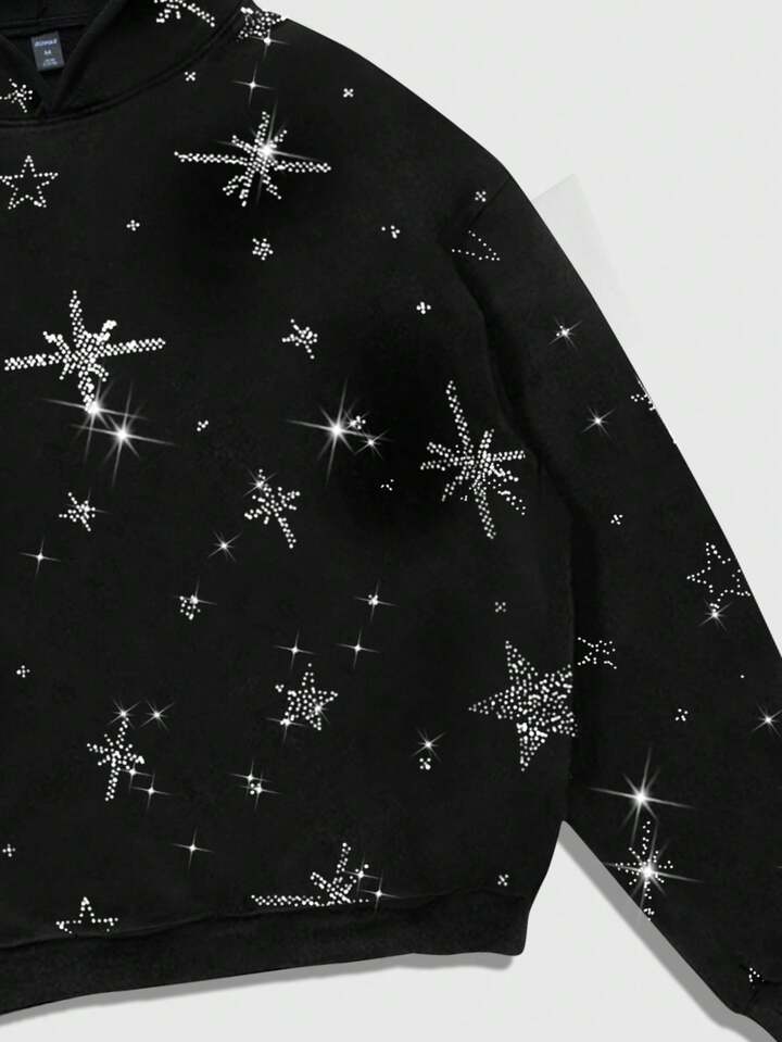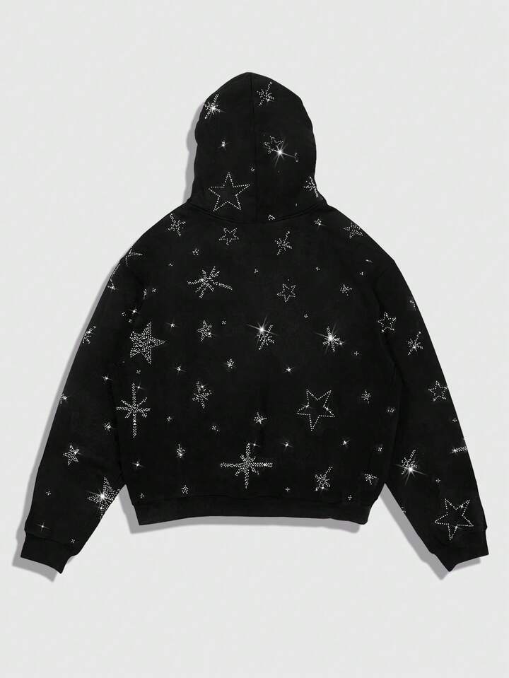 Street Life Sudadera con capucha con adornos de rhinestone para hombre, otoño/invierno