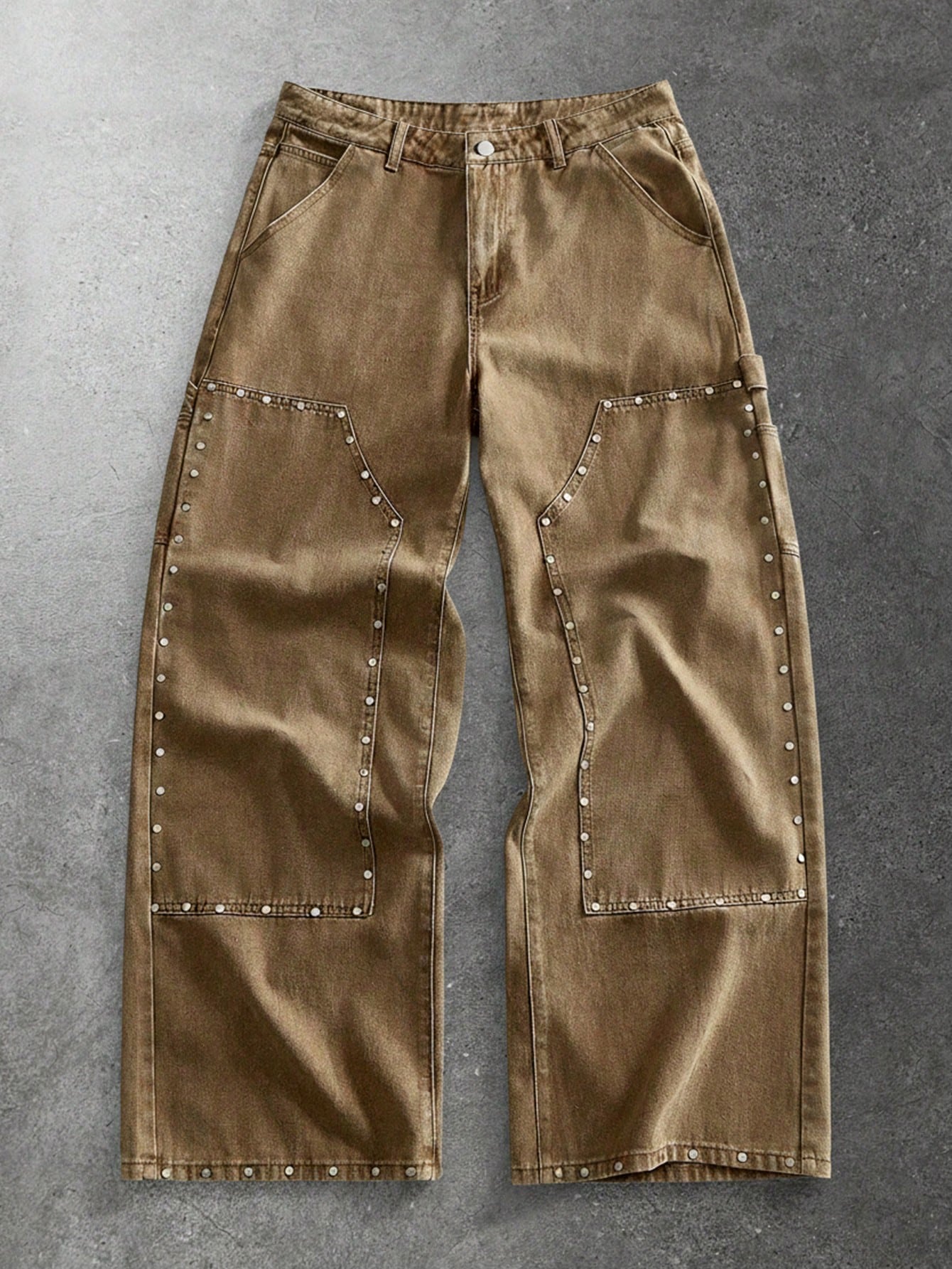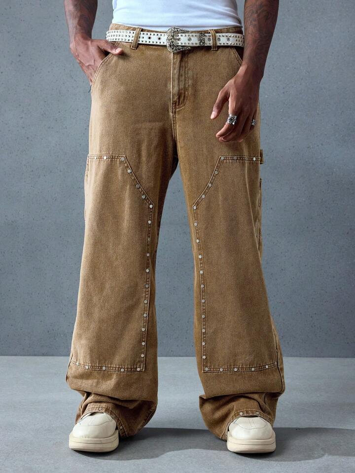 Casual Jeans holgados de carga con decoración de remaches para hombres