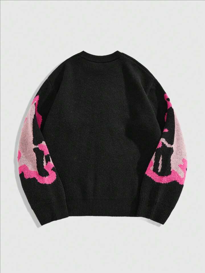 Street Life Jersey de cuello redondo de manga larga con estampado de calavera en tejido jacquard, informal, para hombre, para el otoño/invierno