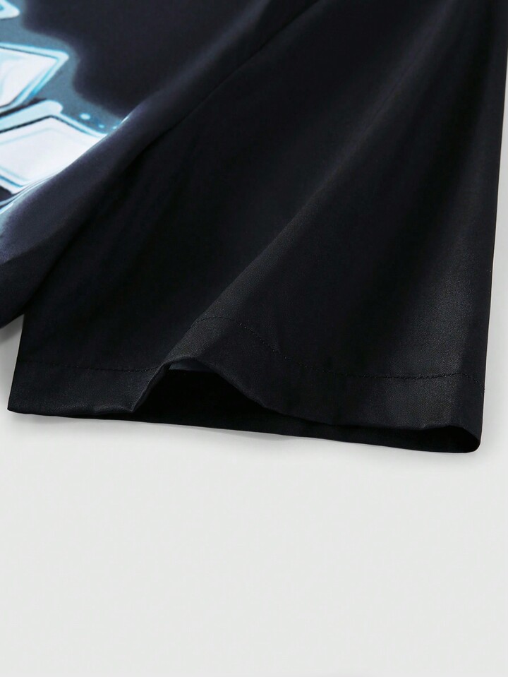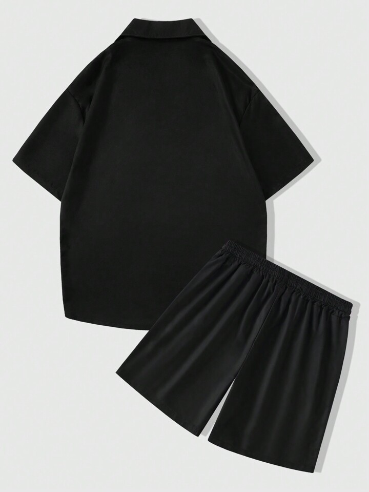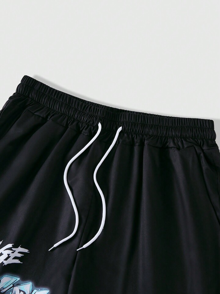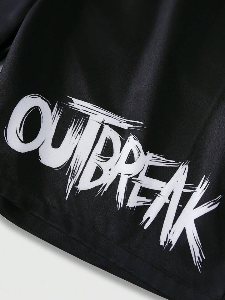Street Life Conjunto de dos piezas de camisa de manga corta con estampado de letras y pantalones cortos para hombre, para primavera y verano