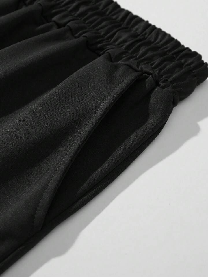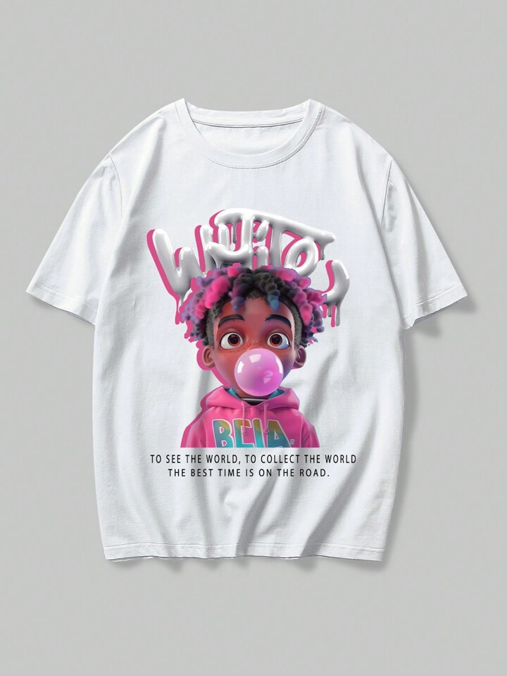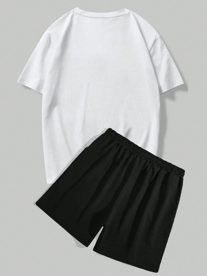 Street Life Conjunto de camiseta de manga corta para hombre con diseño de estampado de patrones de dibujos animados y letras y pantalones cortos con diseño de bolsillo y cuello redondo