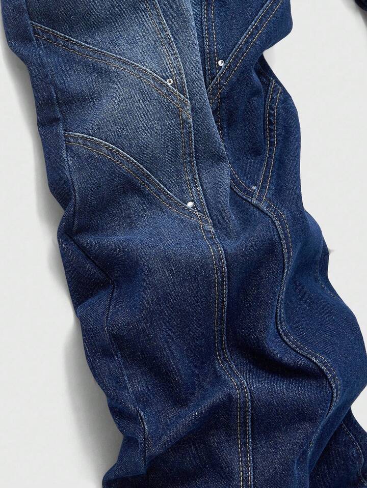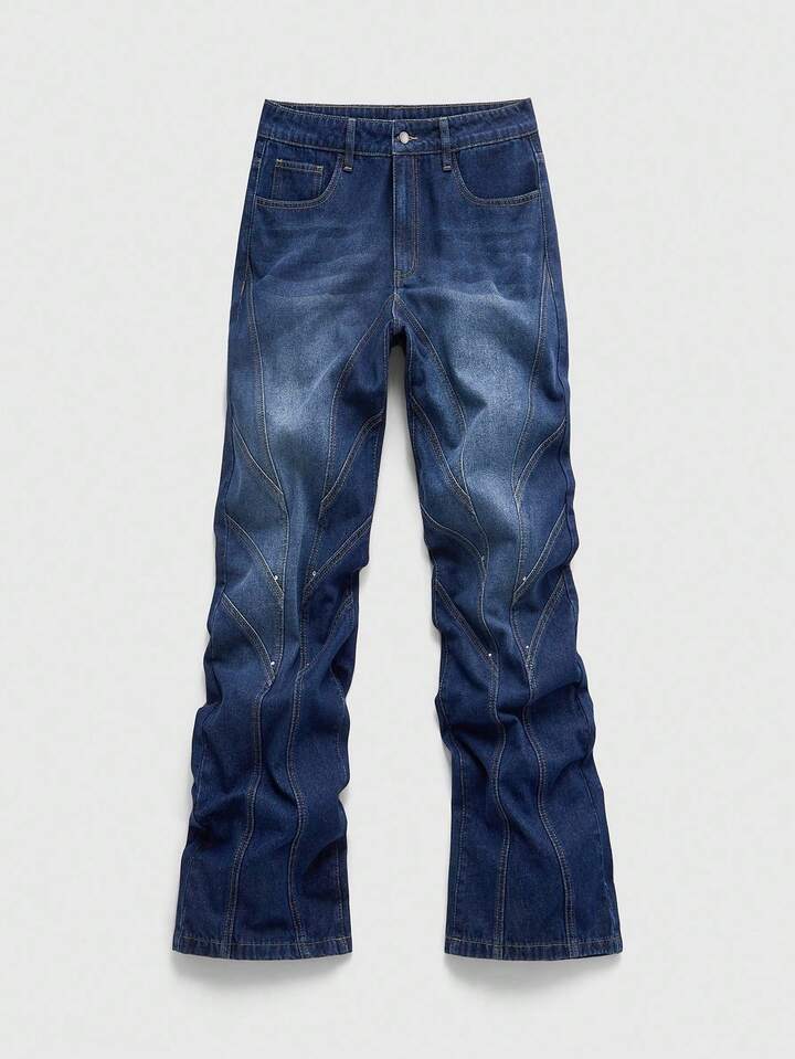 Street Life Jeans de mezclilla de parches sencillos para uso diario de hombres, azul
