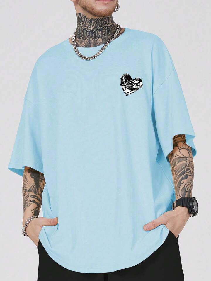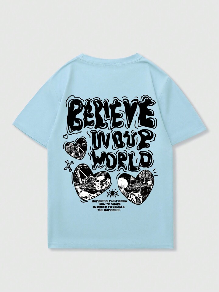 Street Life Camiseta De Hombre De Manga Corta Con Estampado De Calavera Y Texto
