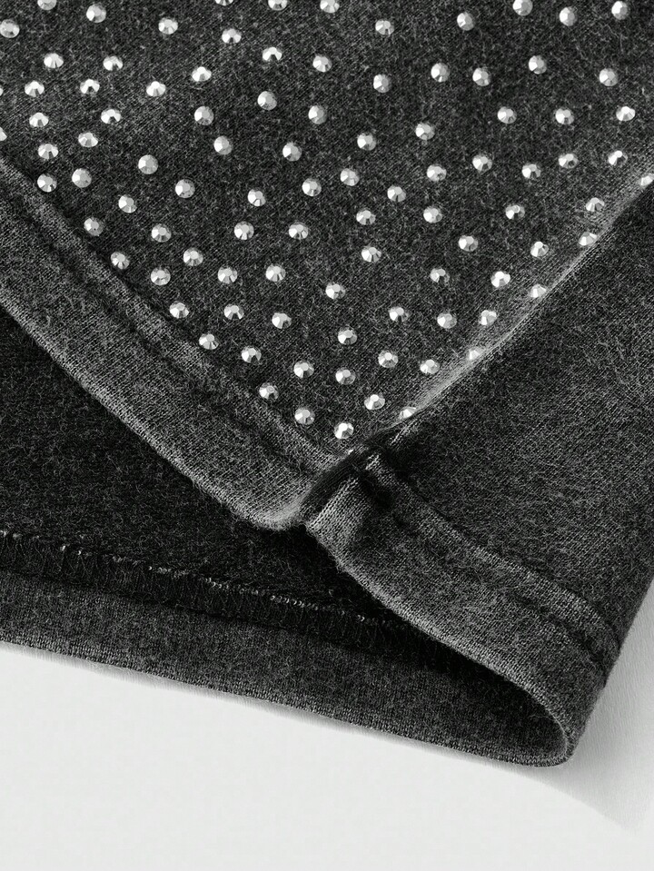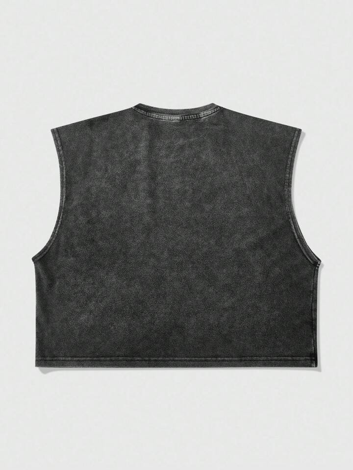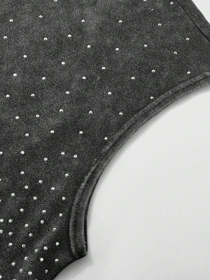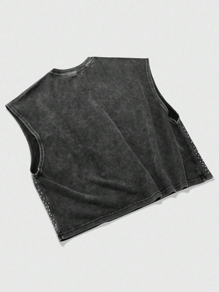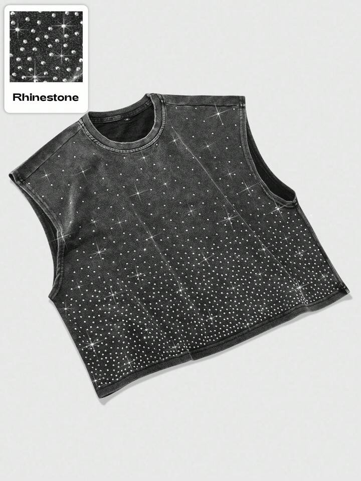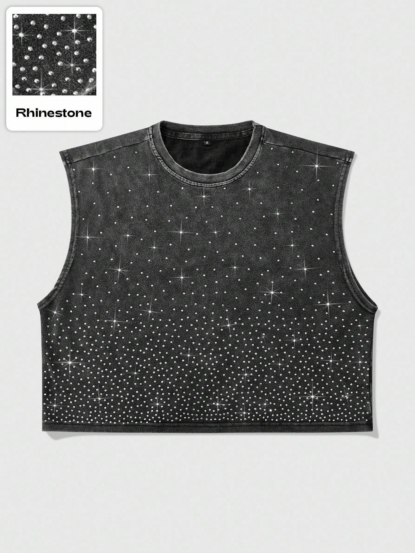 Street Life Chaleco sin mangas para hombre, estilo callejero estadounidense diario con efecto de rhinestone, chaleco corto lavado con estampado de copos de nieve, estilo de los años 2000