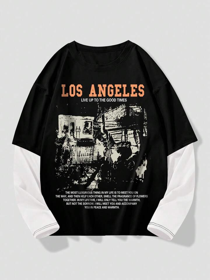 Street Life Camiseta de manga corta de cuello redondo con eslogan gráfico casual para hombre, verano