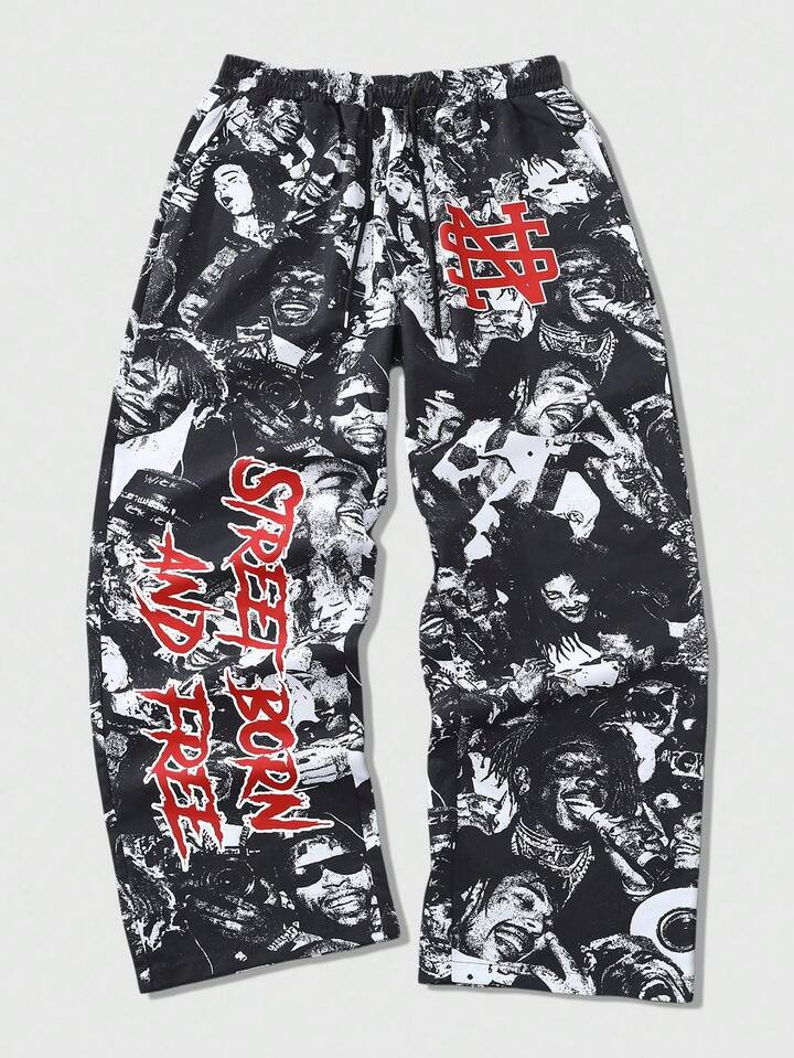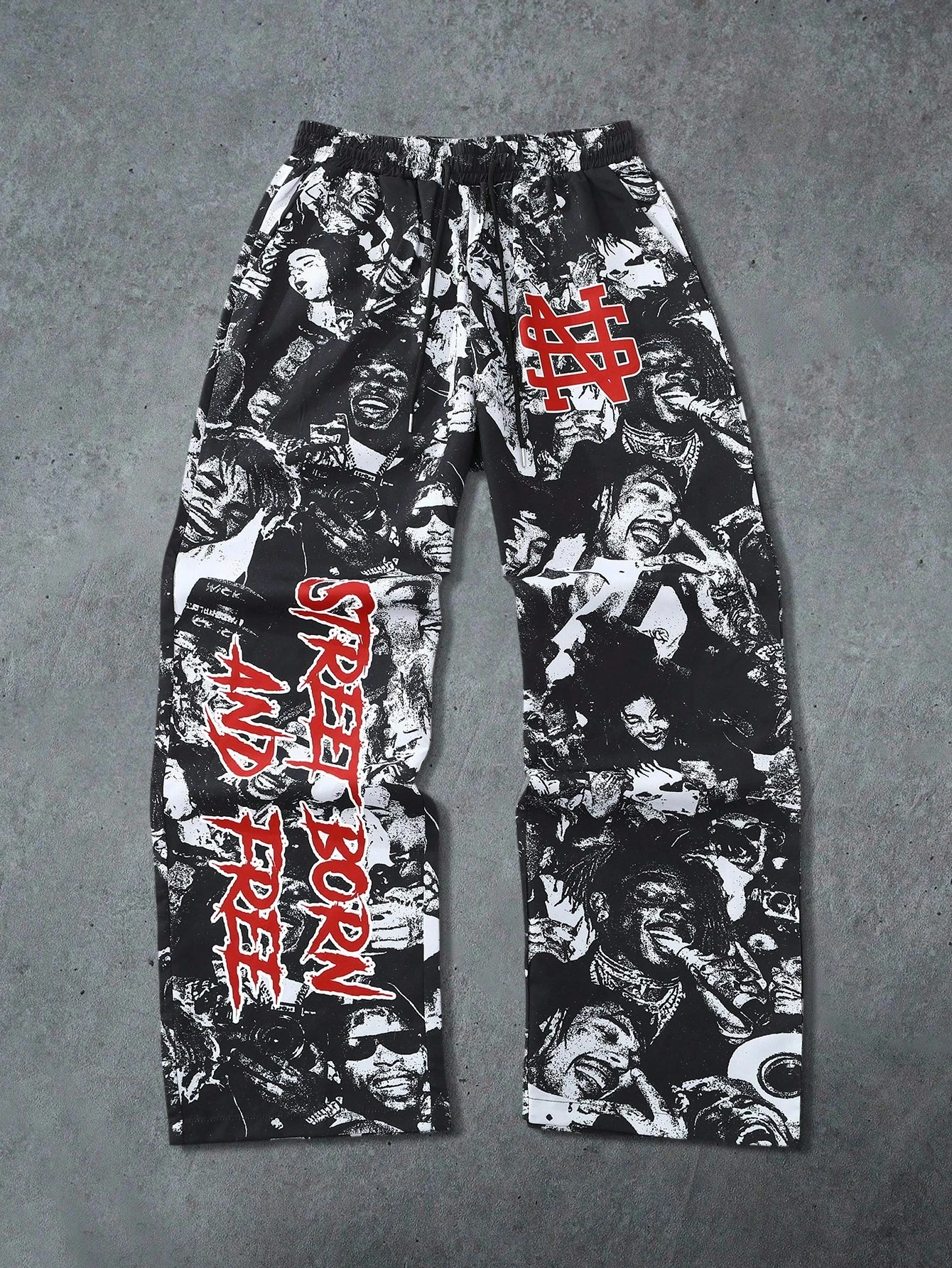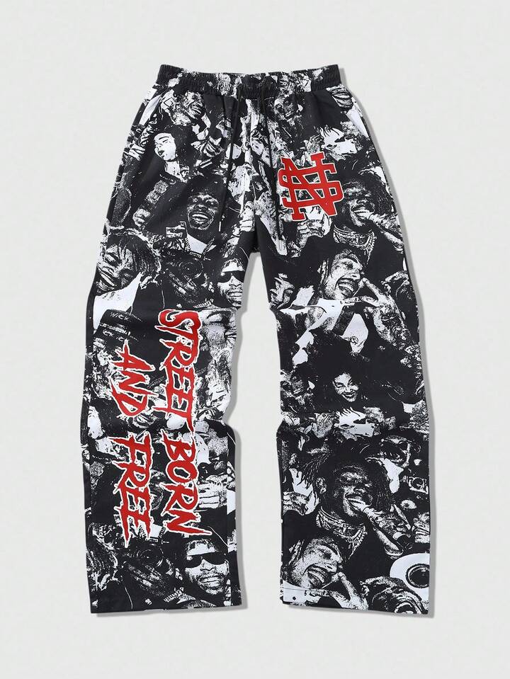 Street Life Pantalones casuales con estampado de eslogan para hombres, adecuados para primavera/verano