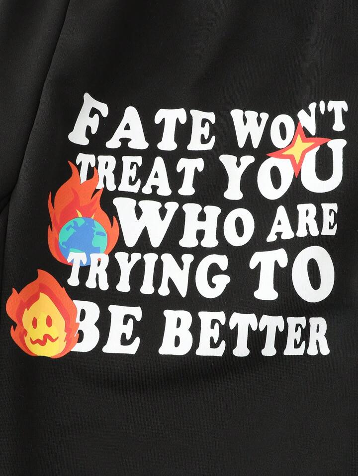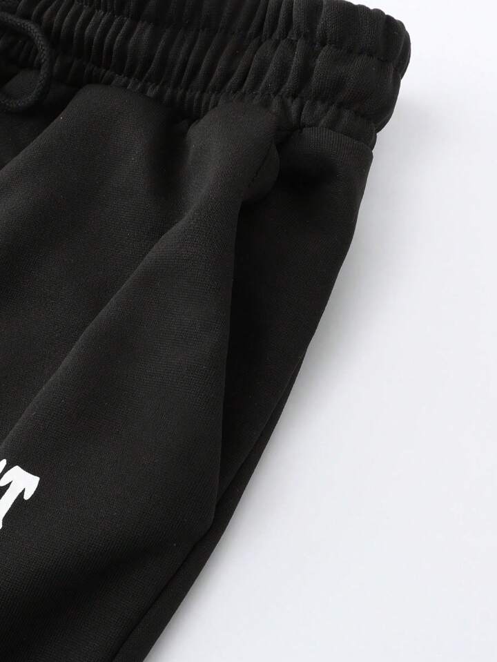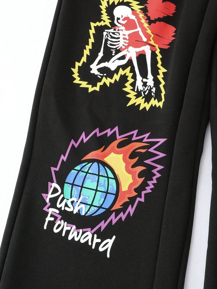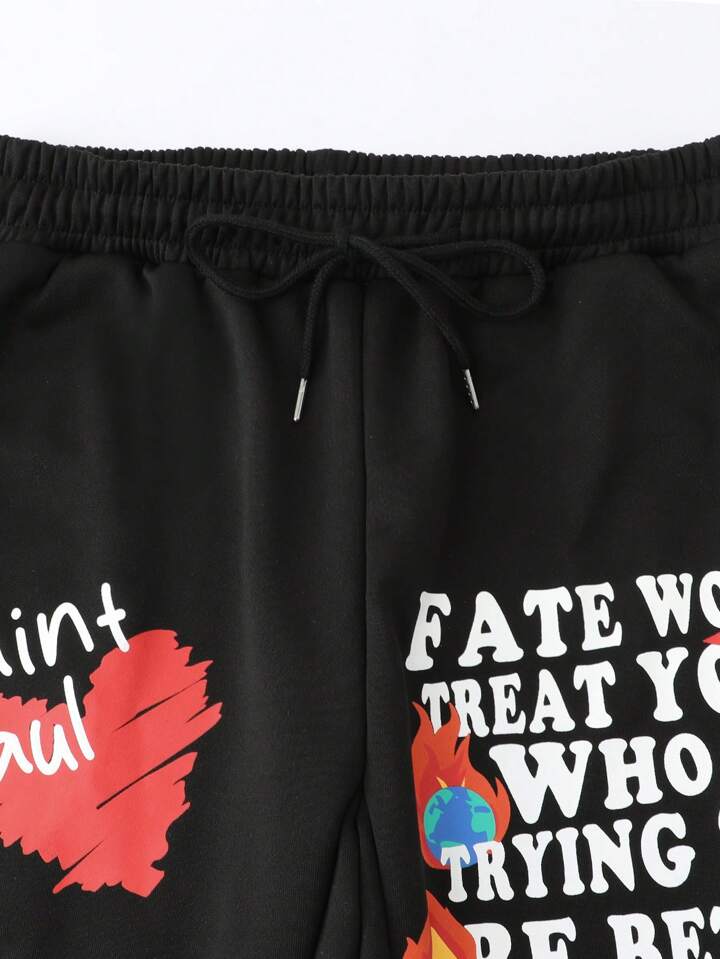 Street Life Pantalones de chándal con estampado de lema, cintura con cordón y abertura acampanada para hombres