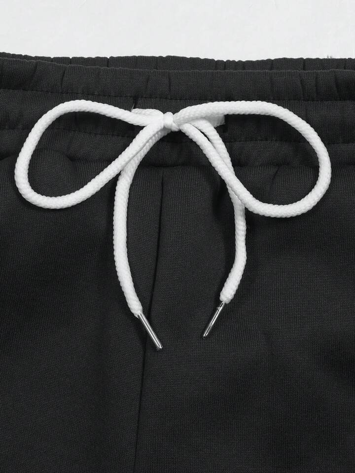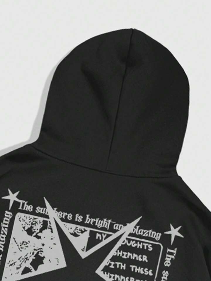 Street Life Conjunto de sudadera con capucha y pantalones rectos de ajuste relajado con estampado de eslogan para hombres