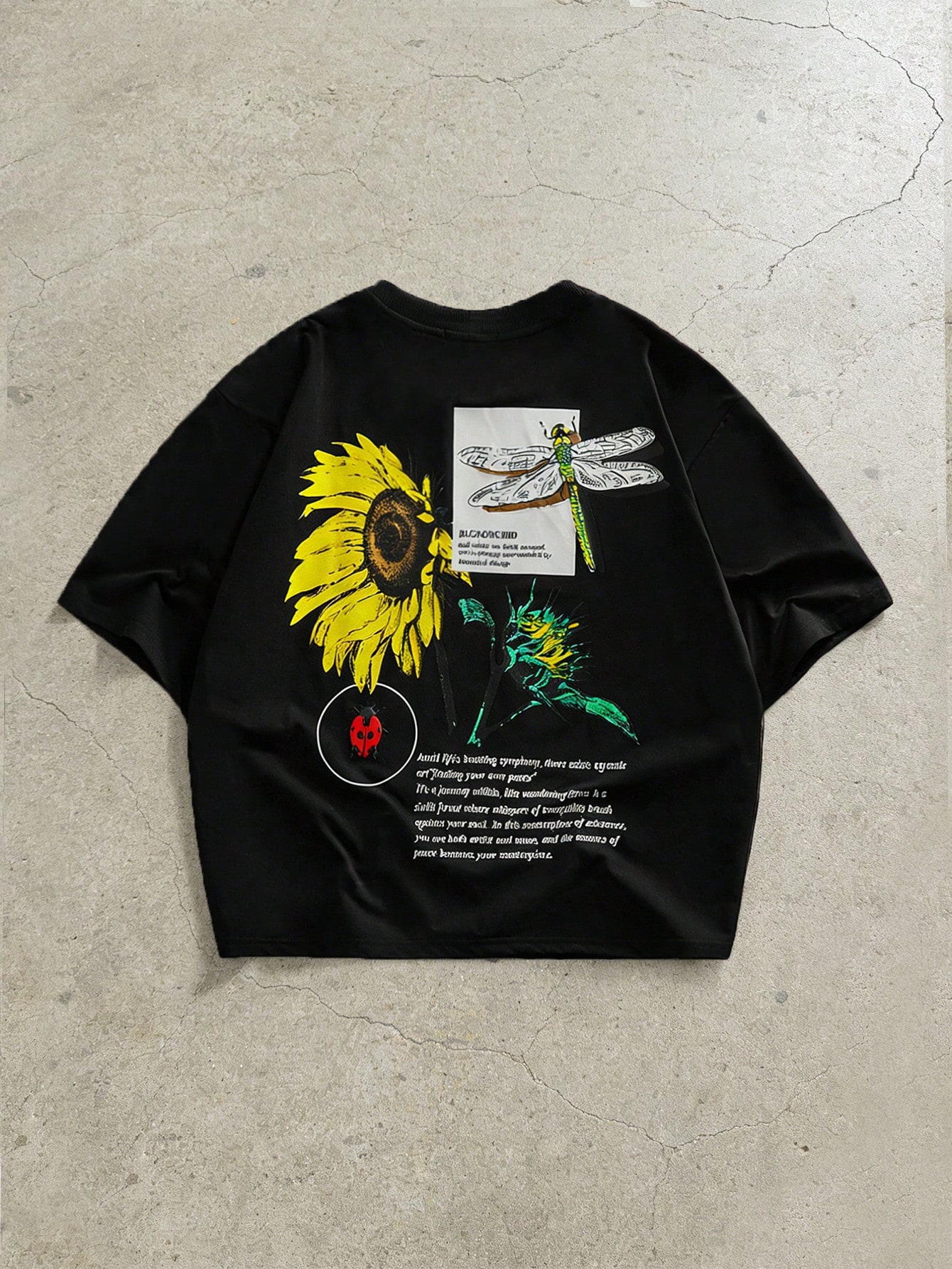 Street Life Camiseta casual de manga corta con cuello redondo y estampado de girasoles para hombres