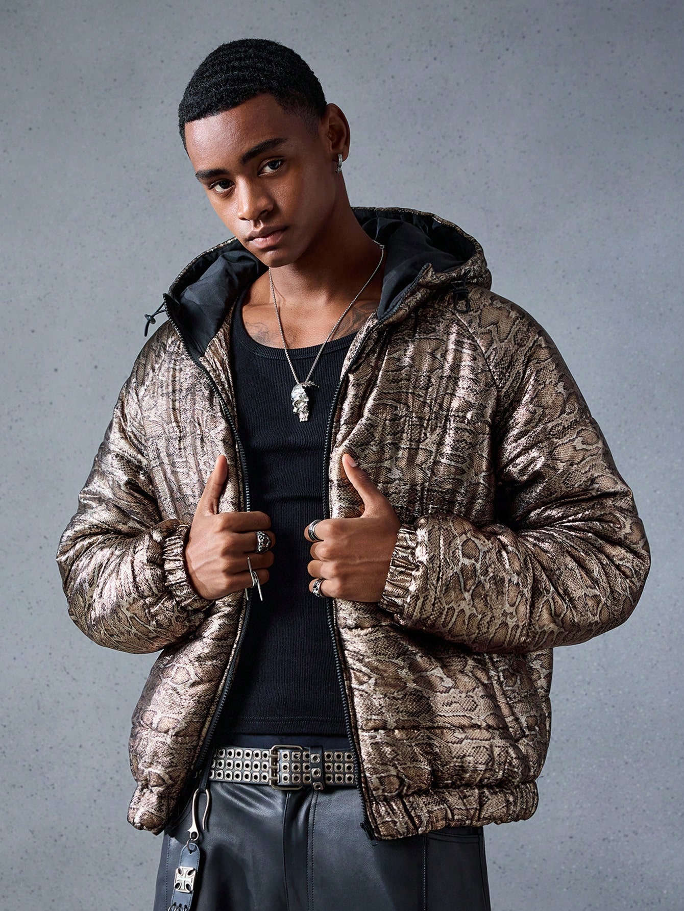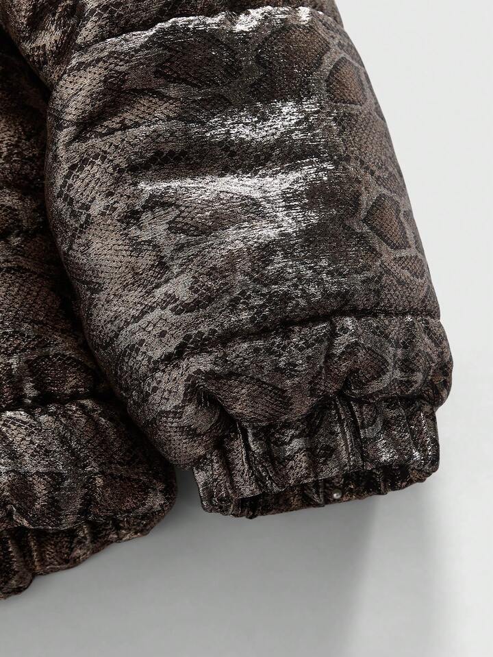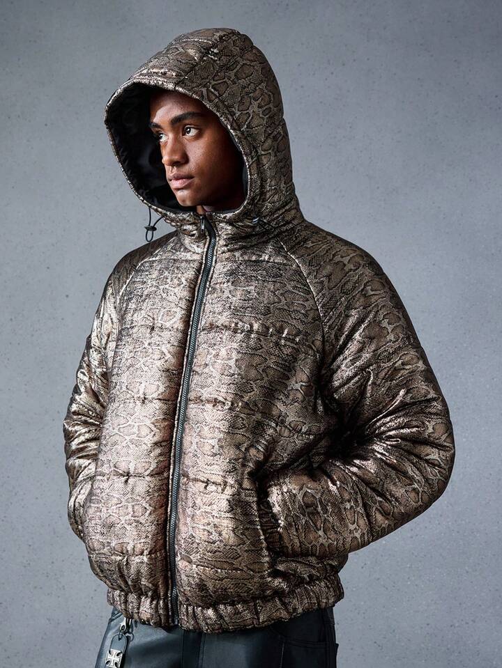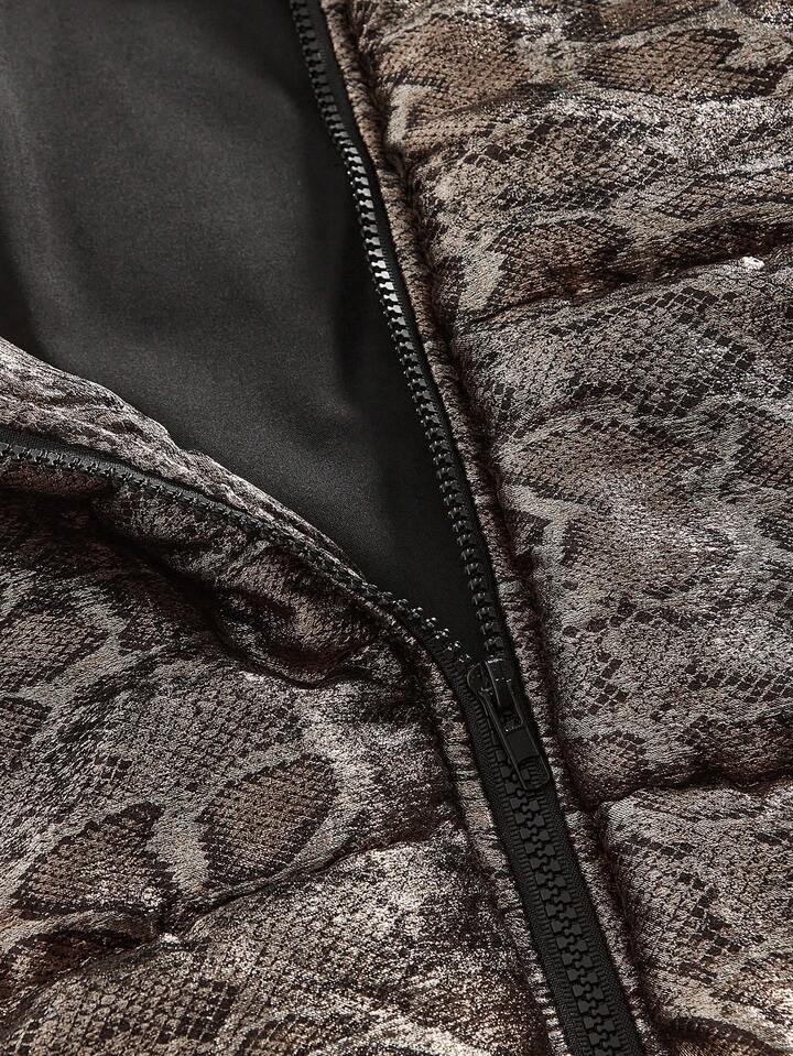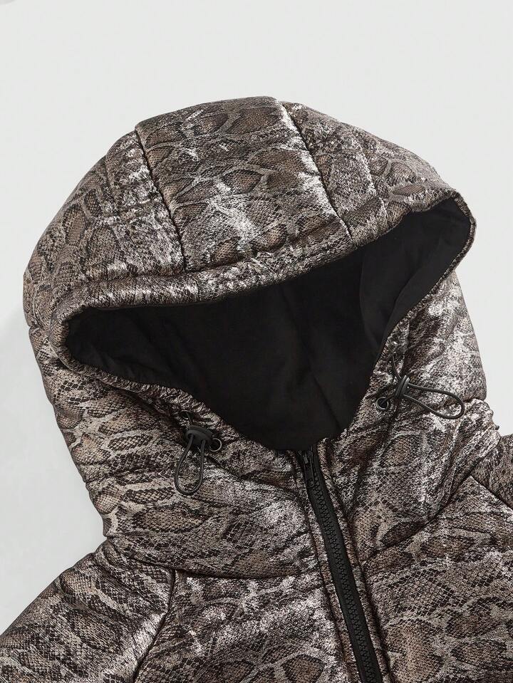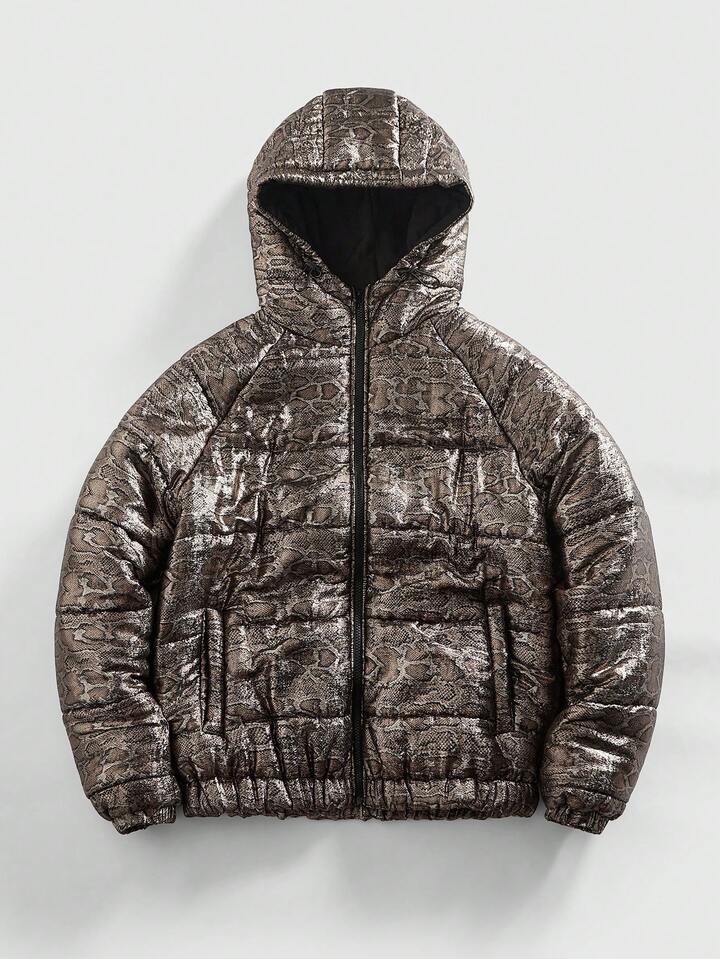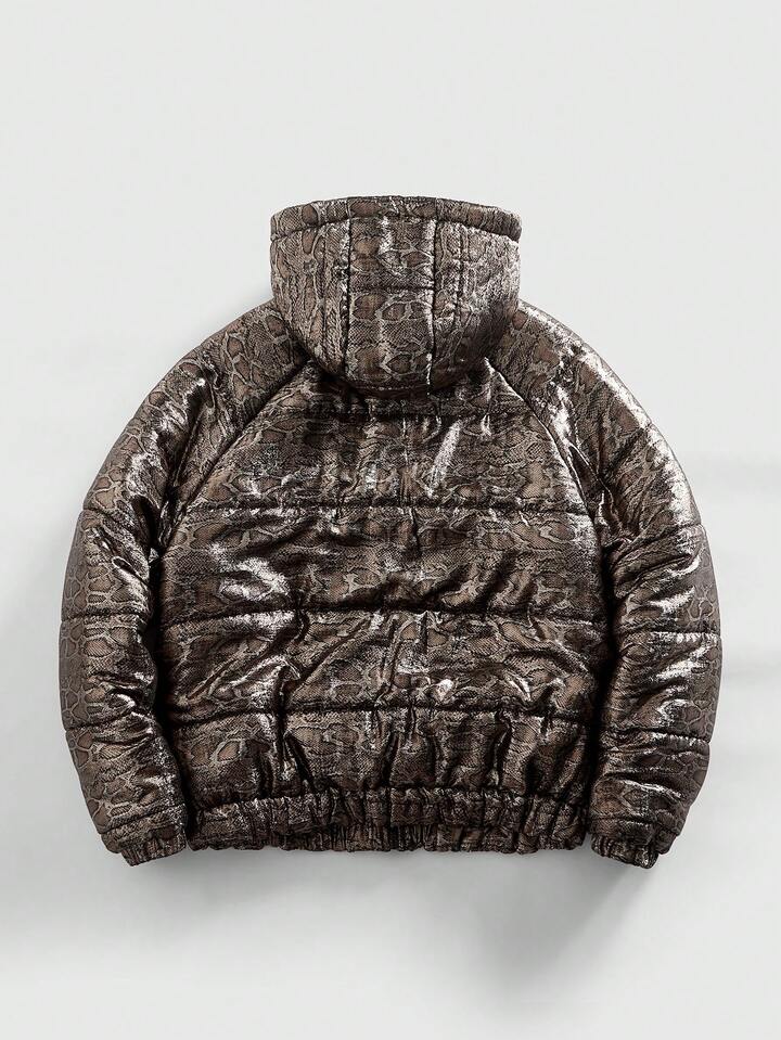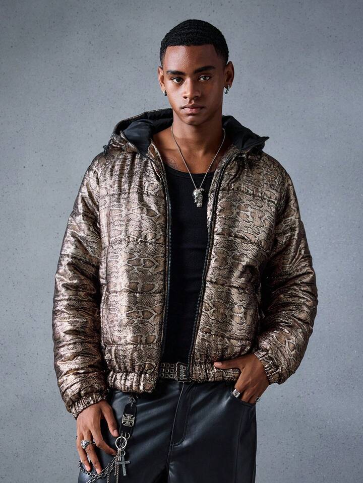 Street Life Chaqueta casual con capucha de invierno para hombres con estampado de piel de serpiente y mangas raglán con cremallera delantera