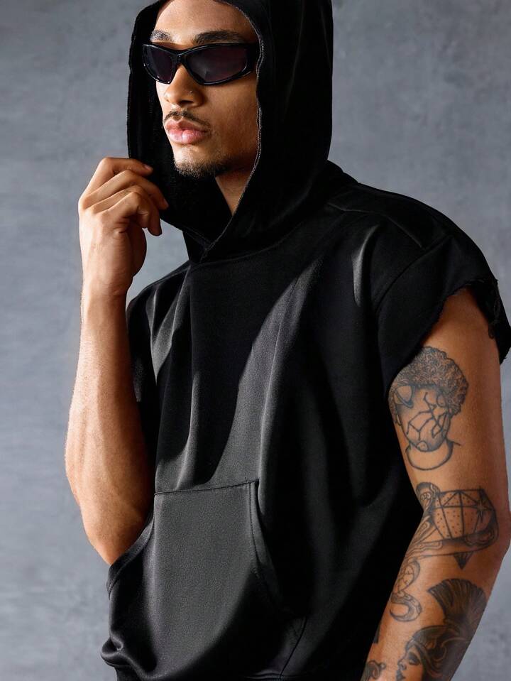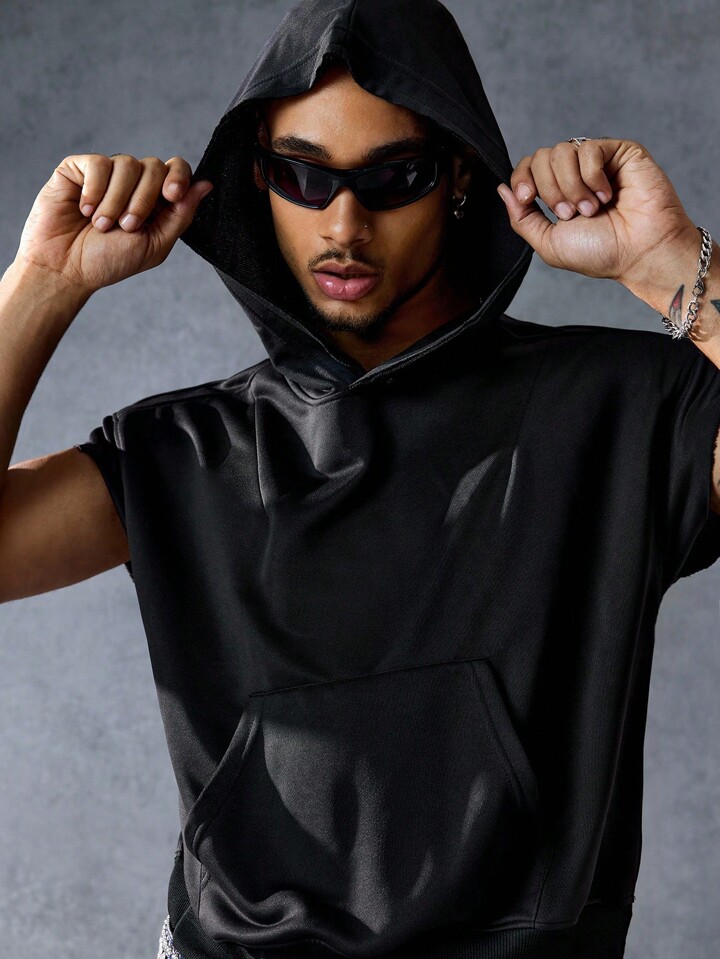 Street Life Sudadera con capucha casual y holgada de unicolor para hombre