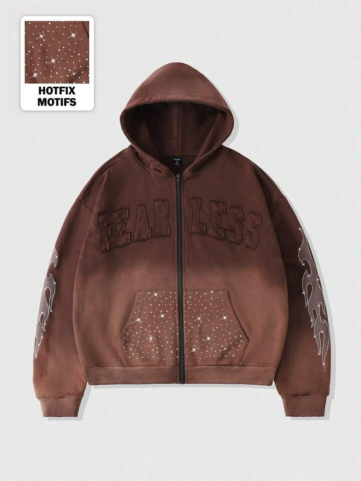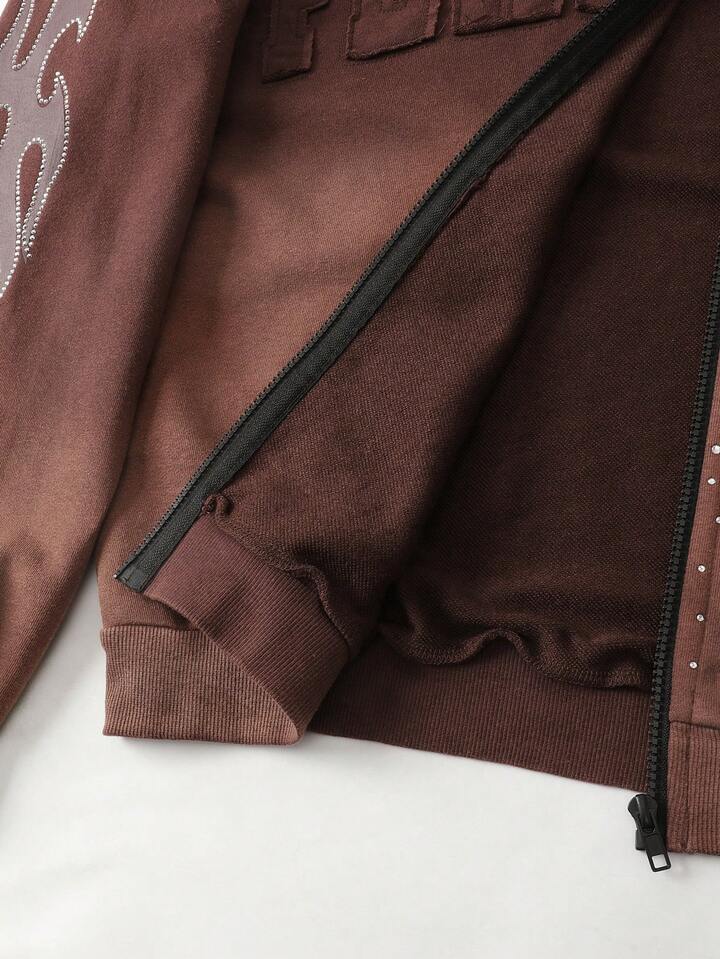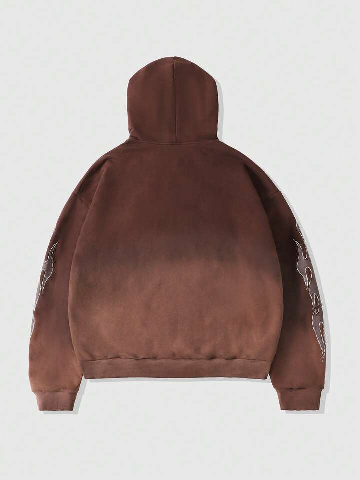 Street Life Sudadera holgada de estilo corto con bordado de diamantes brillantes lavada para hombres