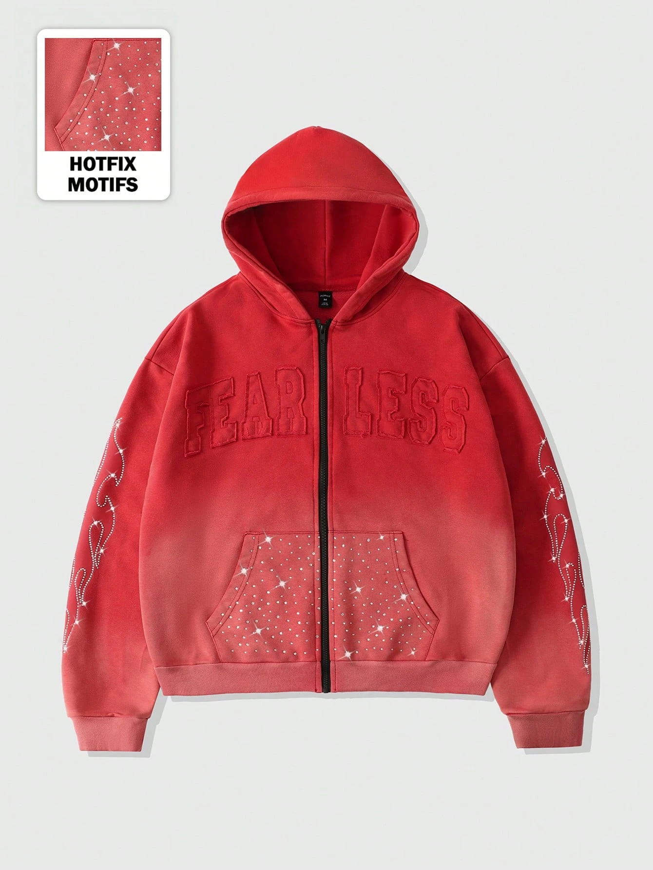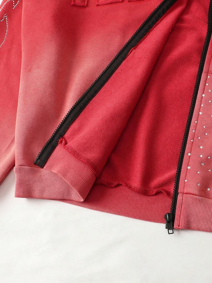 Street Life Sudadera holgada de estilo corto con bordado de diamantes brillantes lavada para hombres