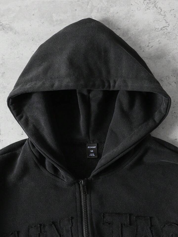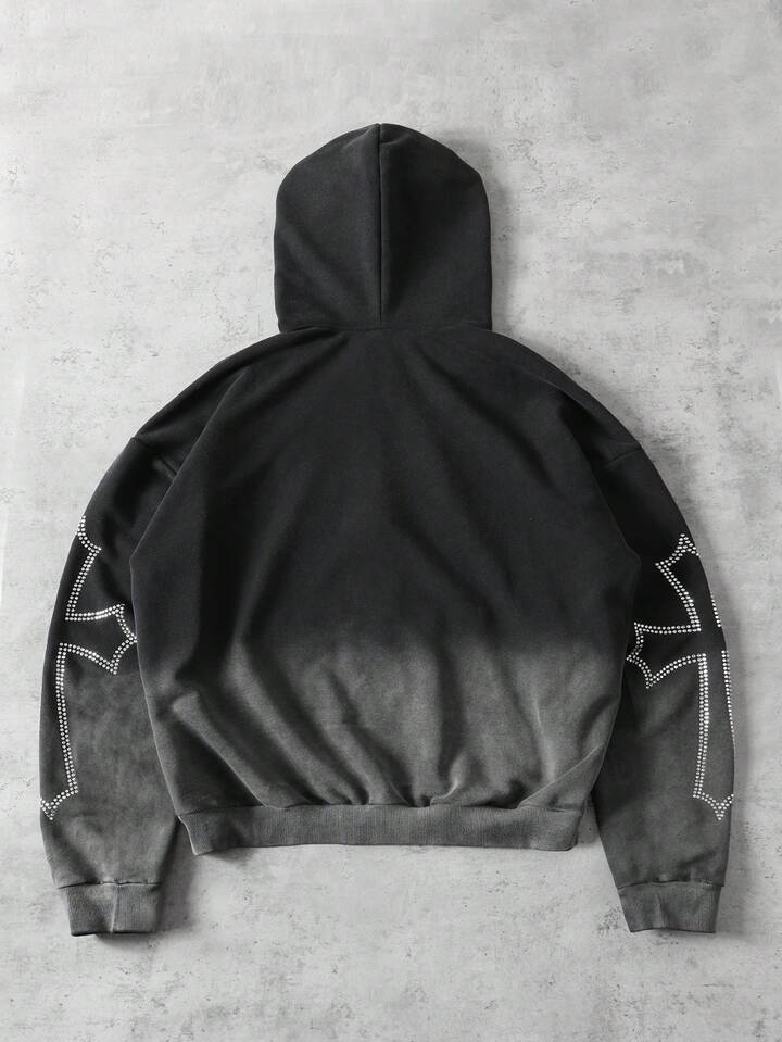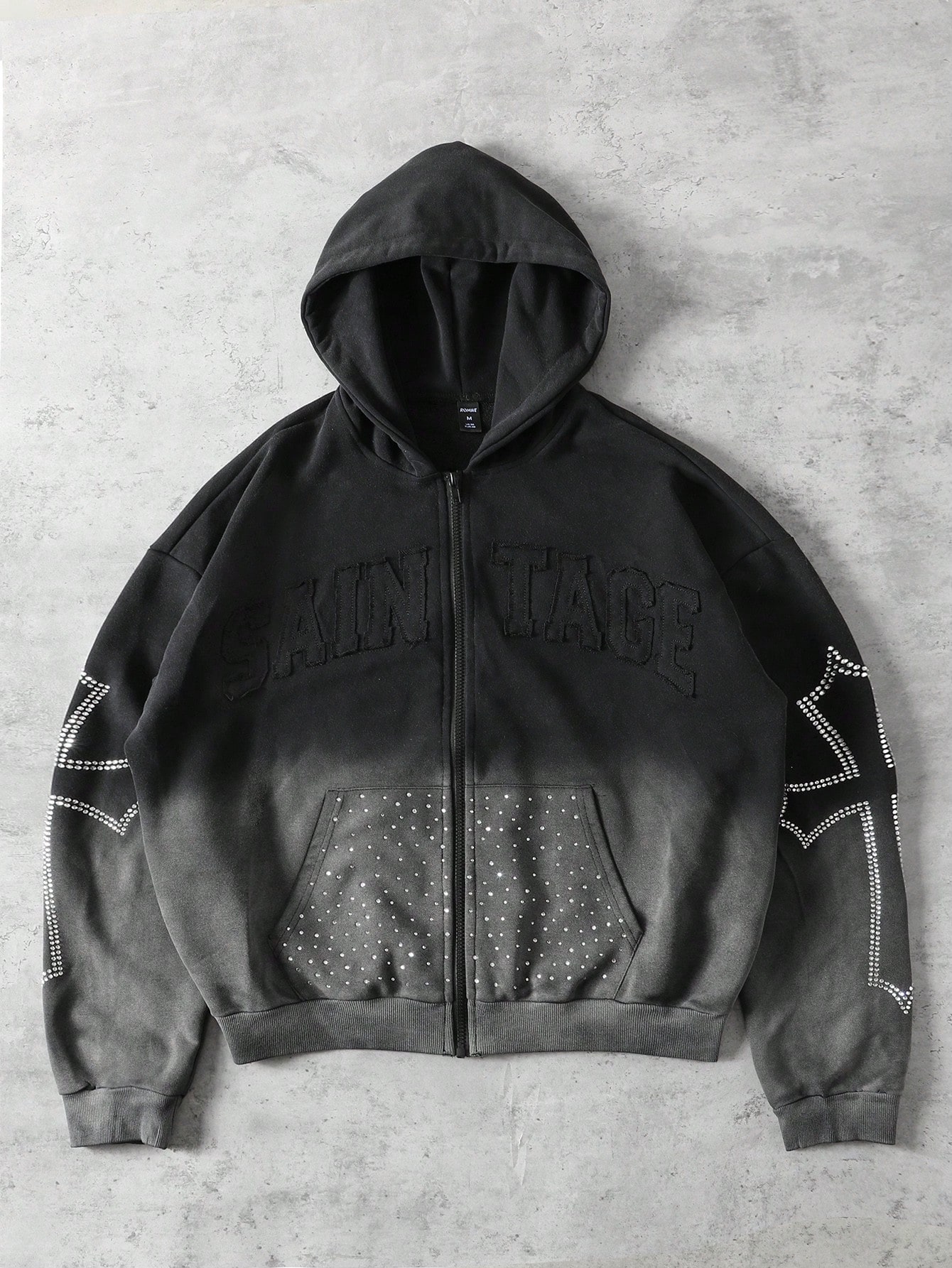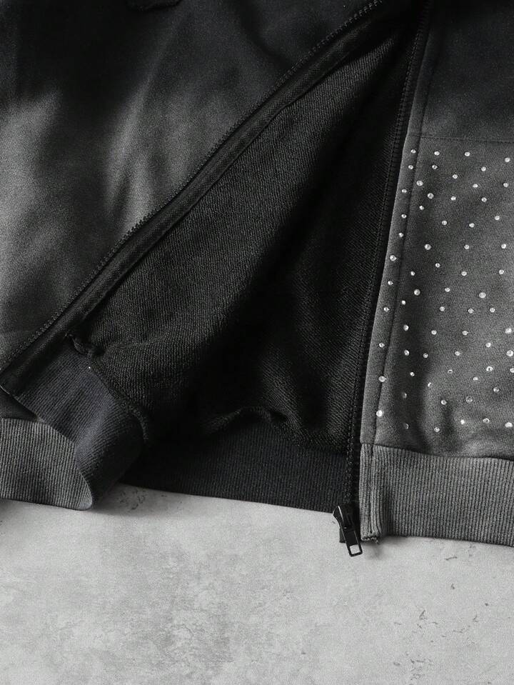 Street Life Sudadera holgada de estilo corto con bordado de diamantes brillantes lavada para hombres