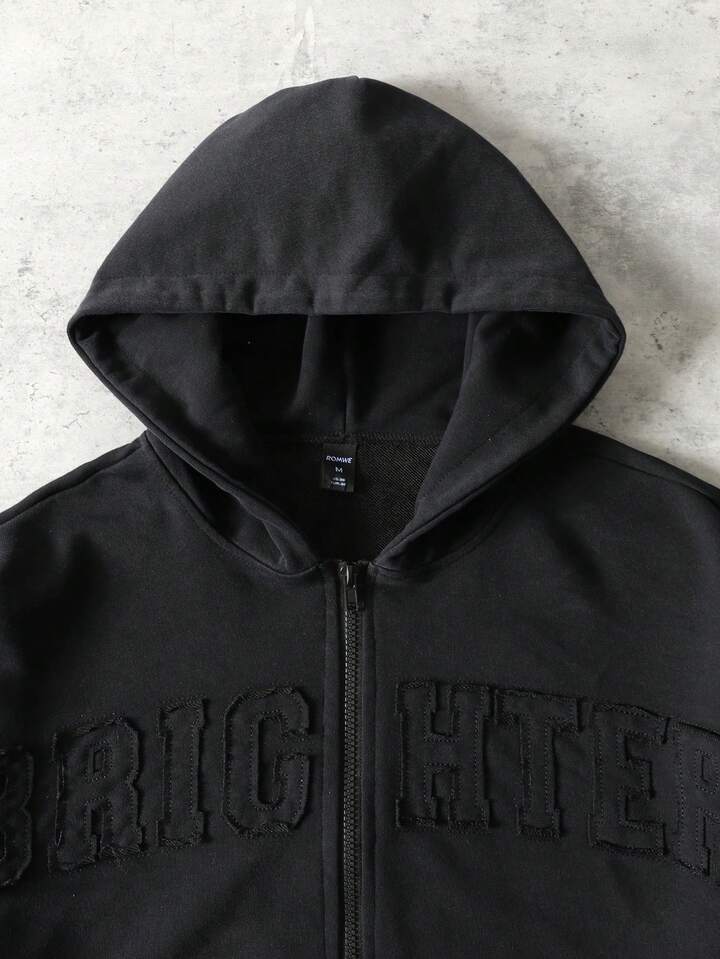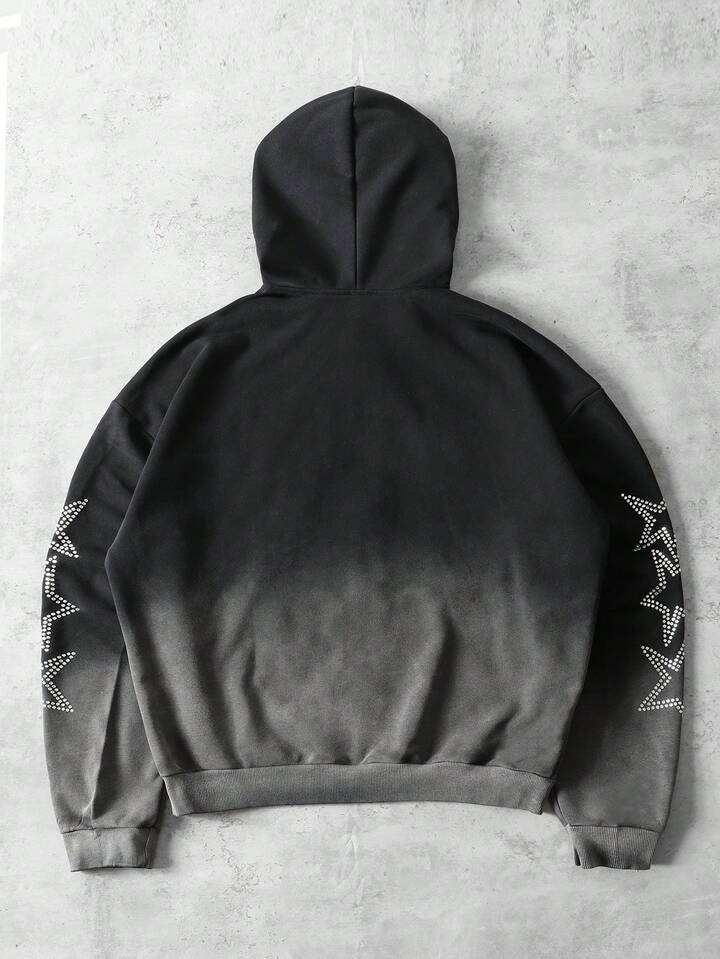 Street Life Sudadera holgada de estilo corto con bordado de diamantes brillantes lavada para hombres