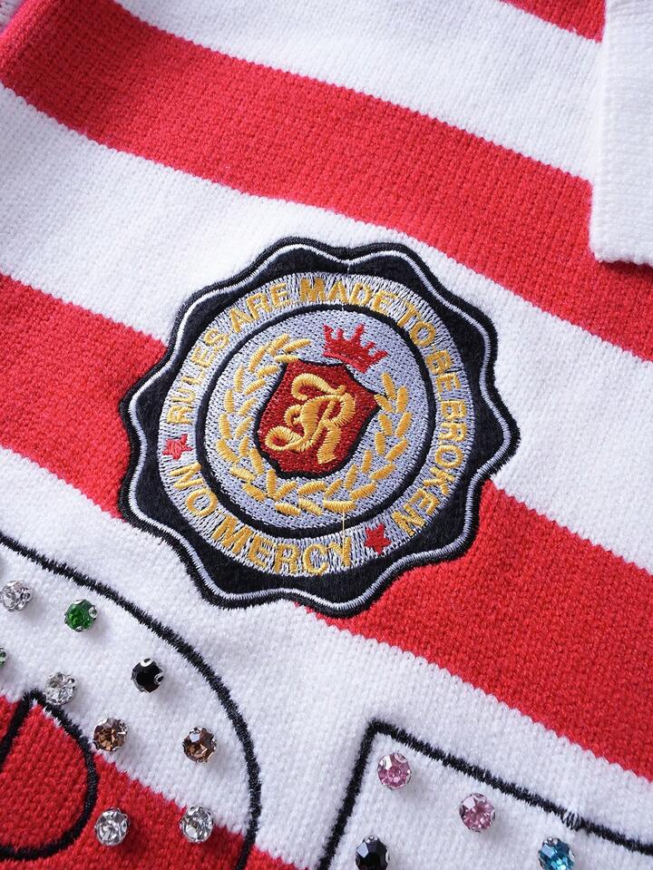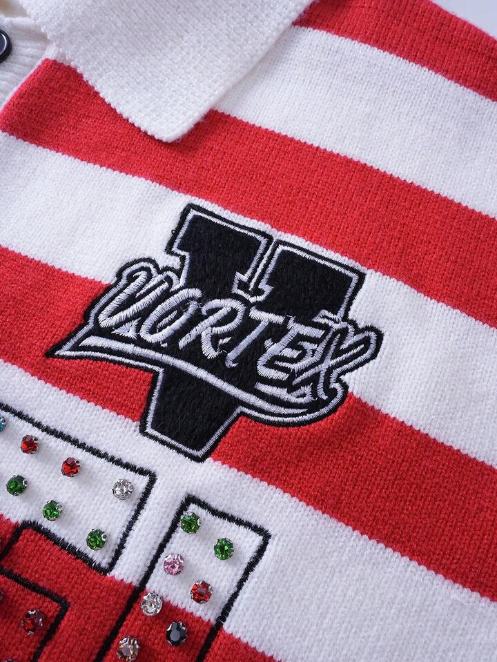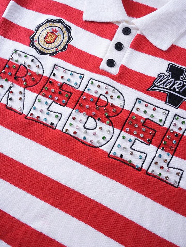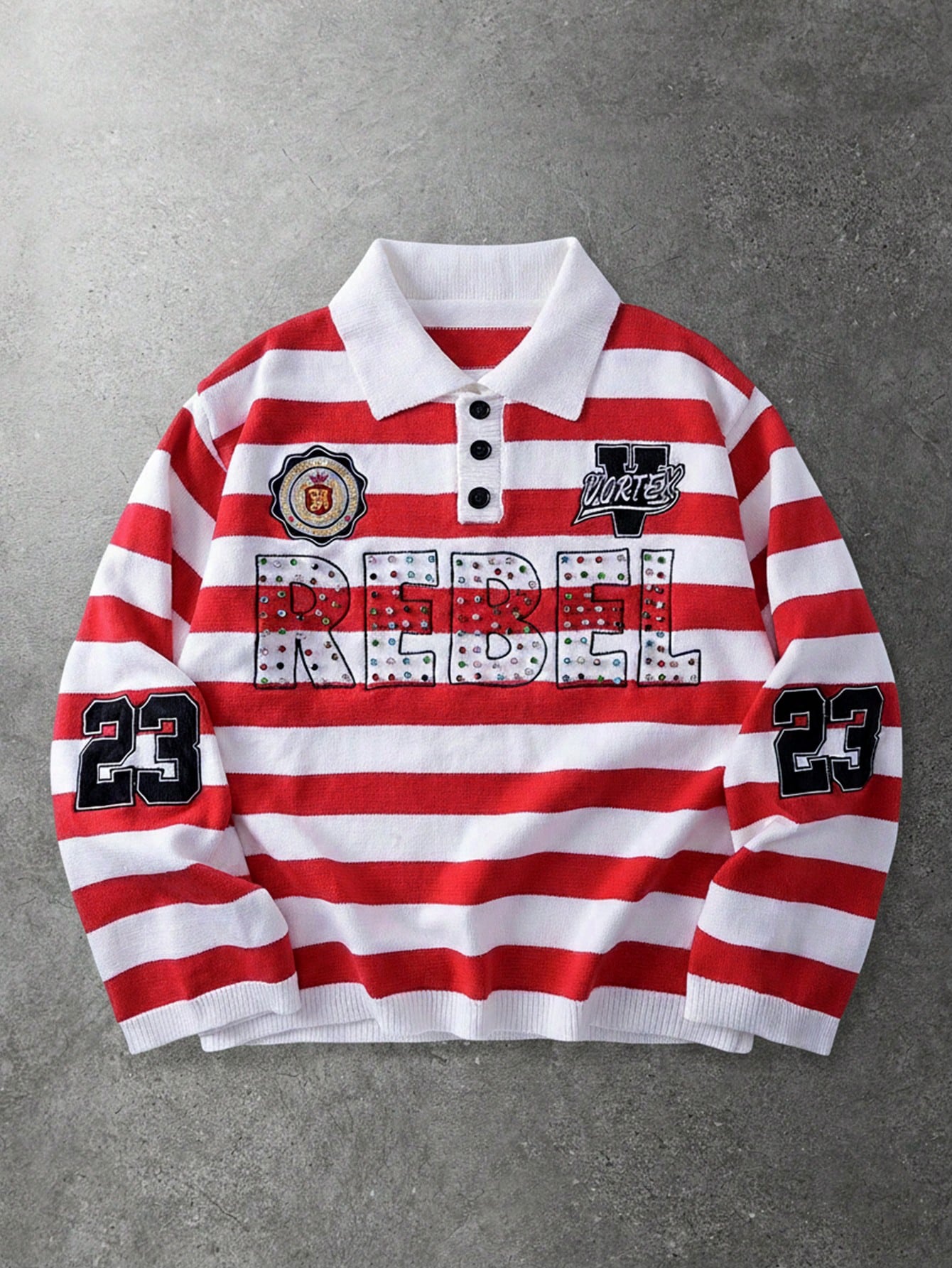 Street Life Suéter de manga larga con rayas y bordado de diamantes brillantes para hombre
