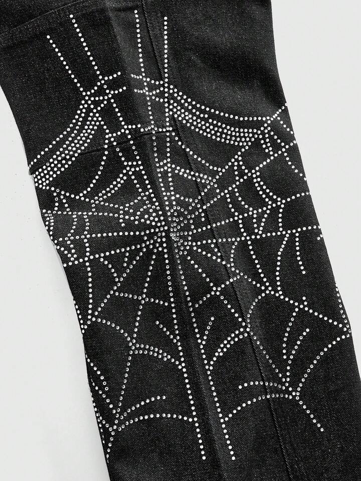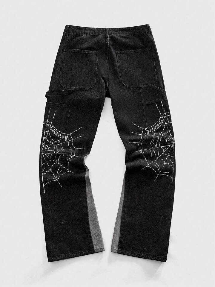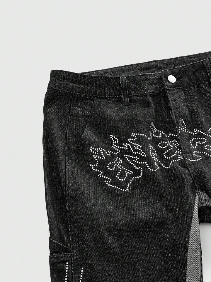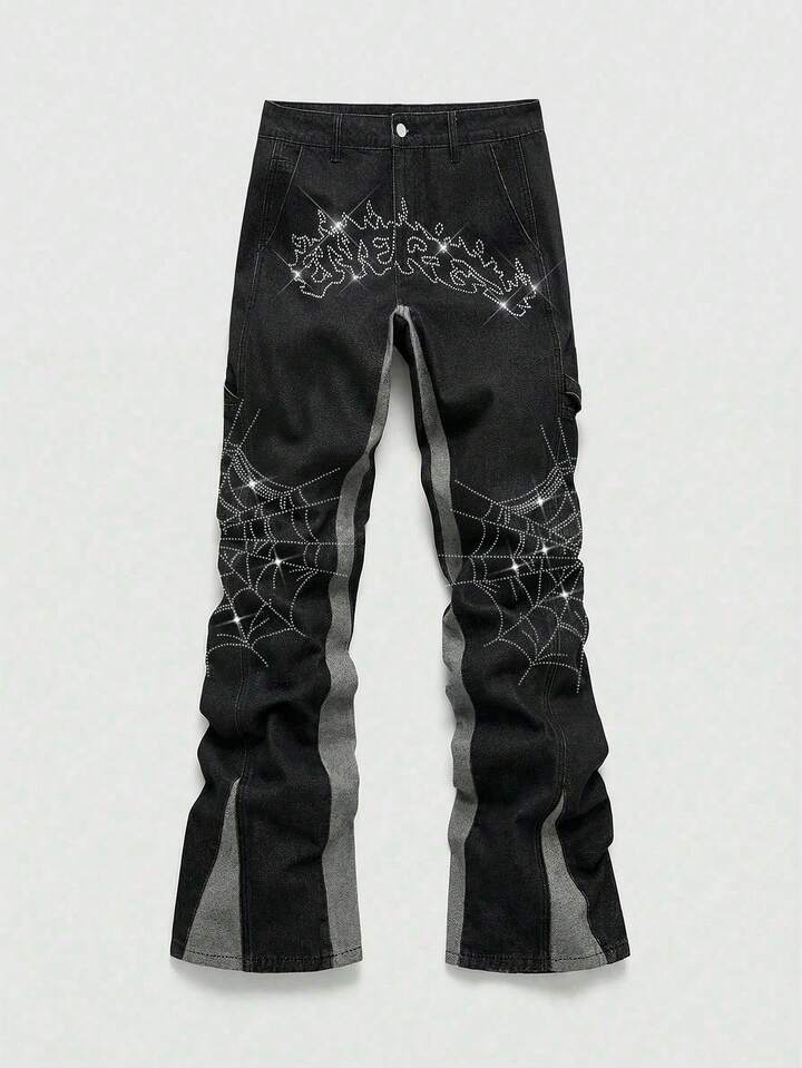 Street Life Jeans acampanados con diseño de diamantes brillantes, parches y contraste de colores para hombres